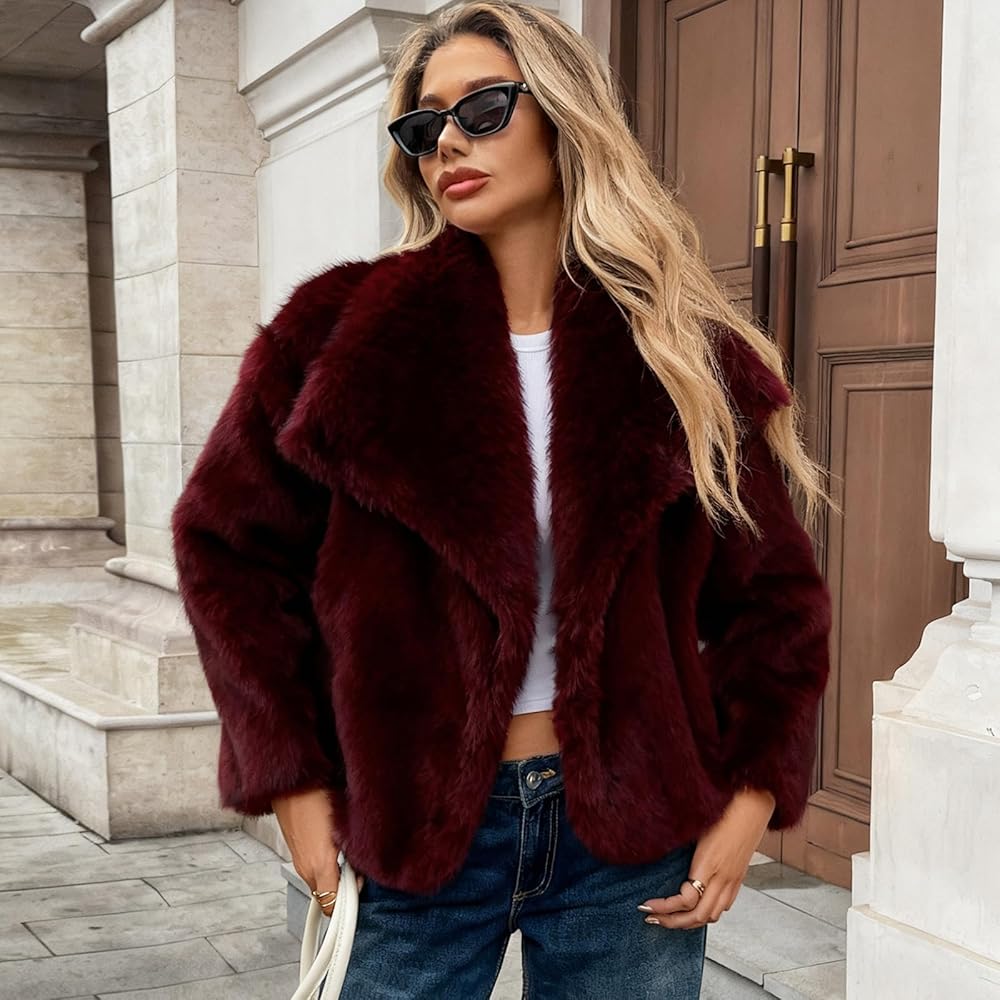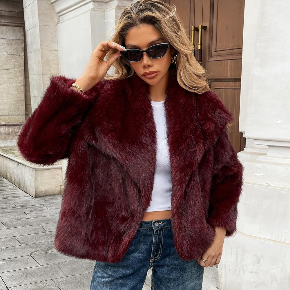 التصميم: معاطف فرو عصرية للسيدات، زرين مخفيين للإغلاق، سهل الارتداء والخلع، جيبان جانبيان مخفيان، مبطن بالكامل، طول قصير، تصميم مفتوح من الأمام، معطف عصري فضفاض من الفرو الصناعي للنساء والفتيات