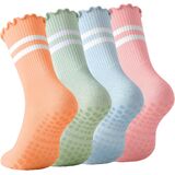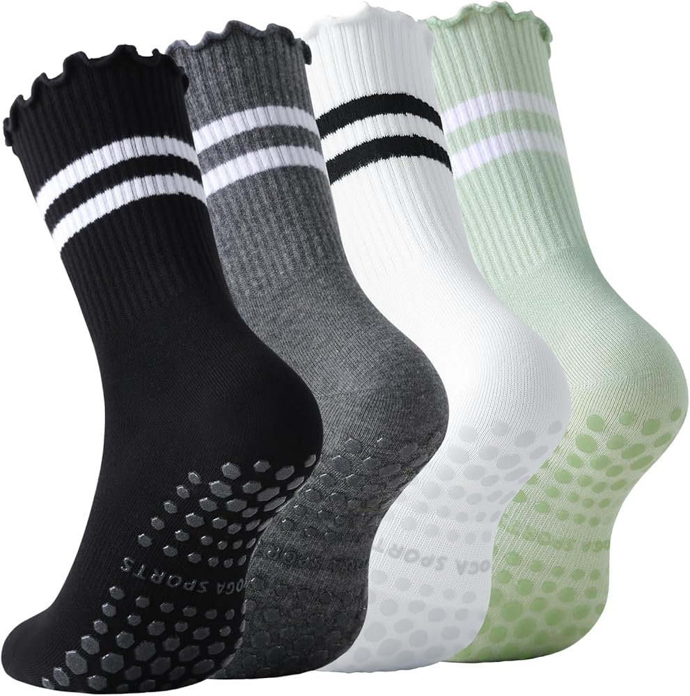 4 Pairs Colorful Grip Socks:Our yoga socks with Grip is comfortable & stretch real nice without worrying about the durability.These non skid pilates socks with grips for women fit for shoe sizes 5-10.Machine or hand wash,air dry and no ironing.It's a good present for Mother's Day, Graduation, Birthday, Anniversaries, Christmas, and New Year