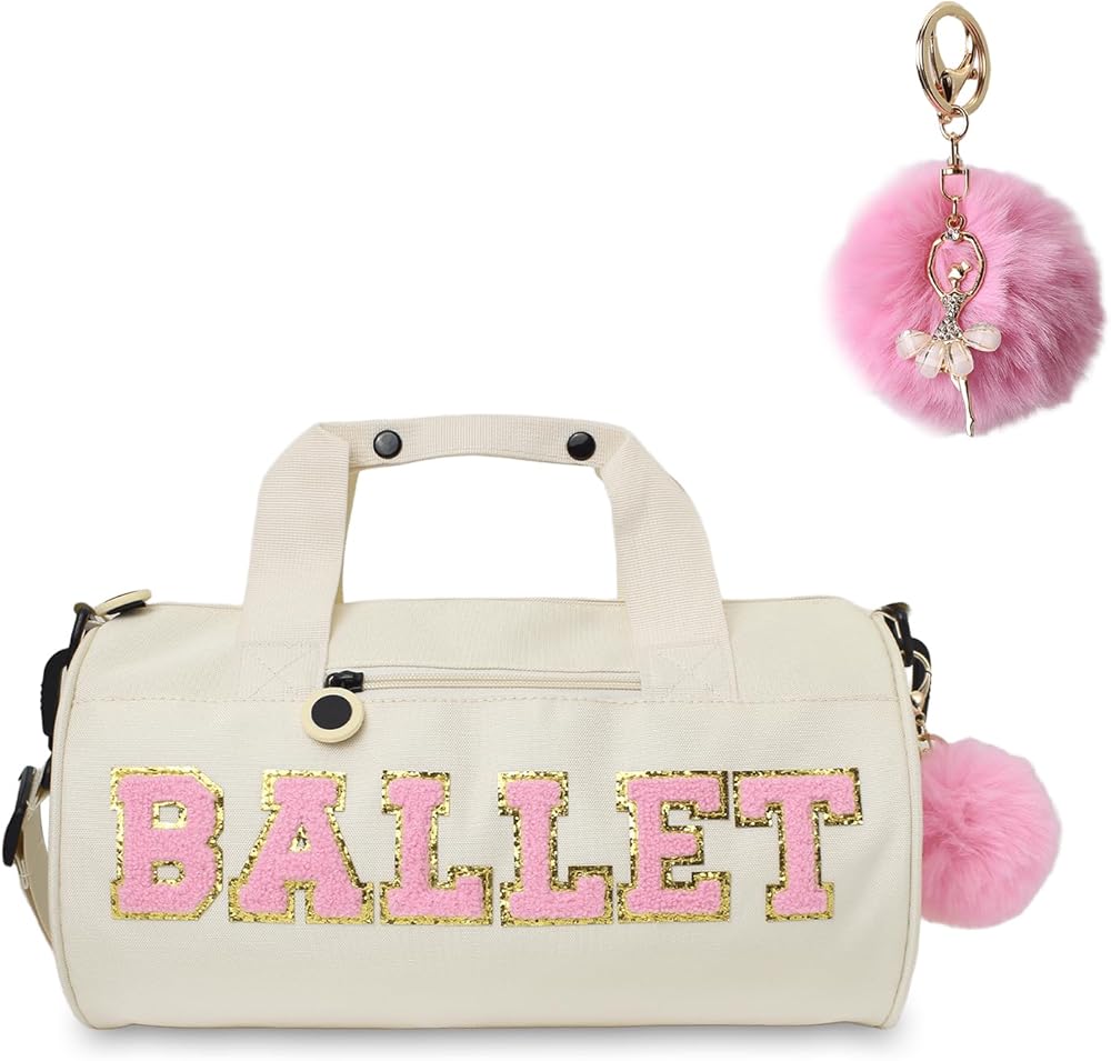 Durable Dance Bag: This dance duffle bag is crafted from high-quality nylon Oxford fabric, featuring smooth zippers and sturdy carry handles.The vibrant sewn-on colorful chenille letters and charm add a lively accent to the bag.
