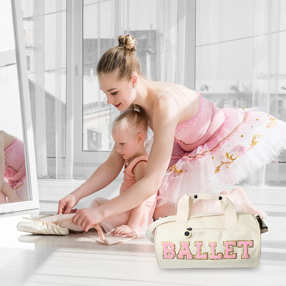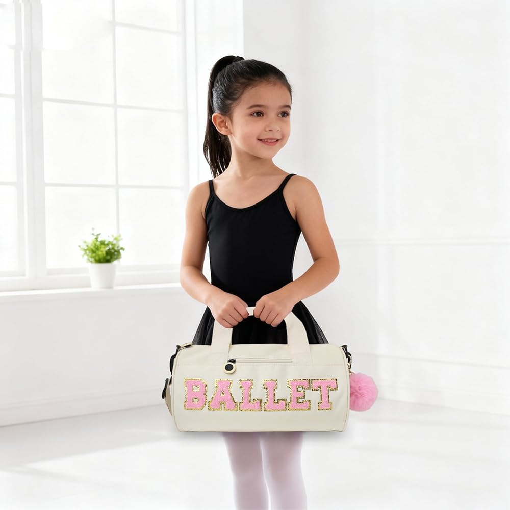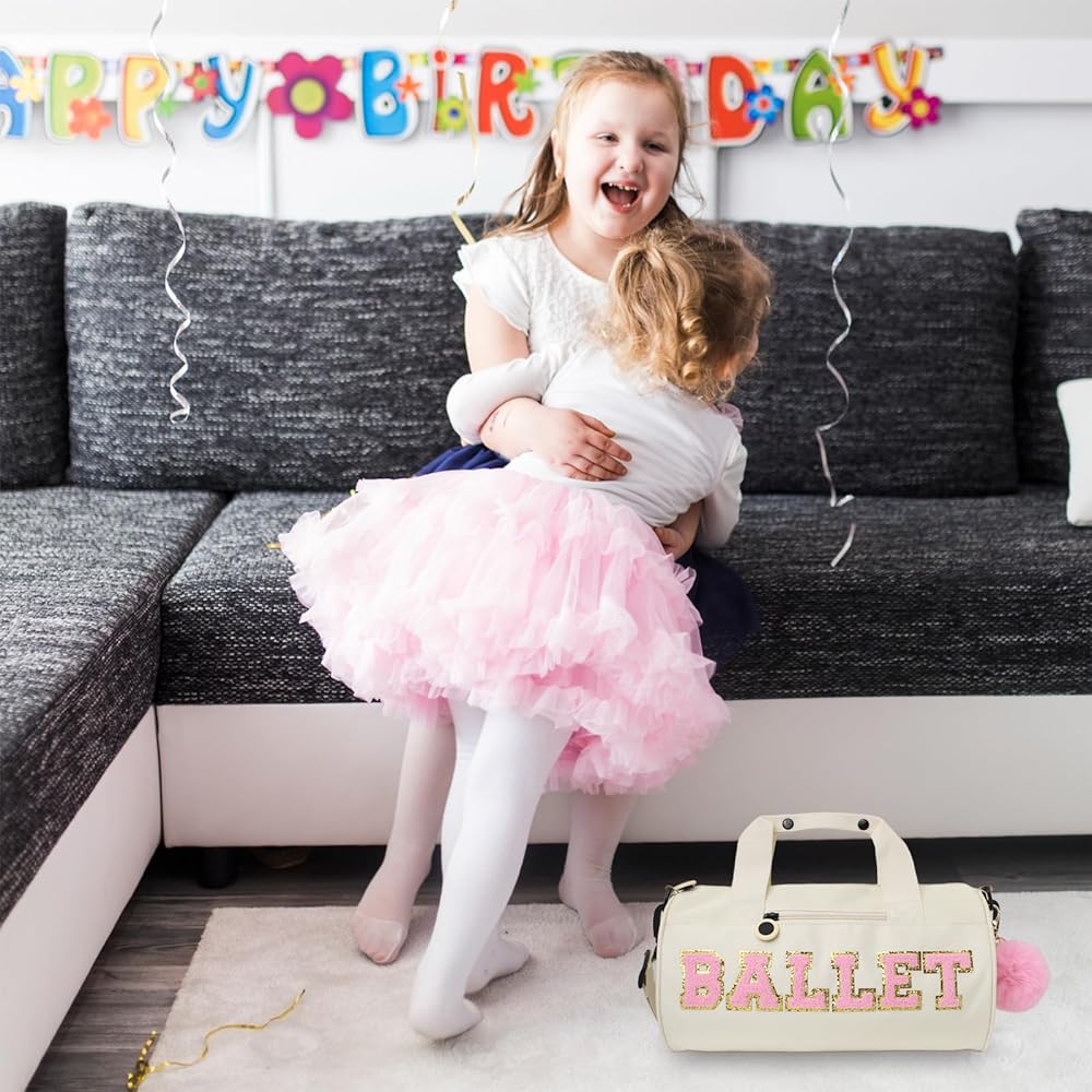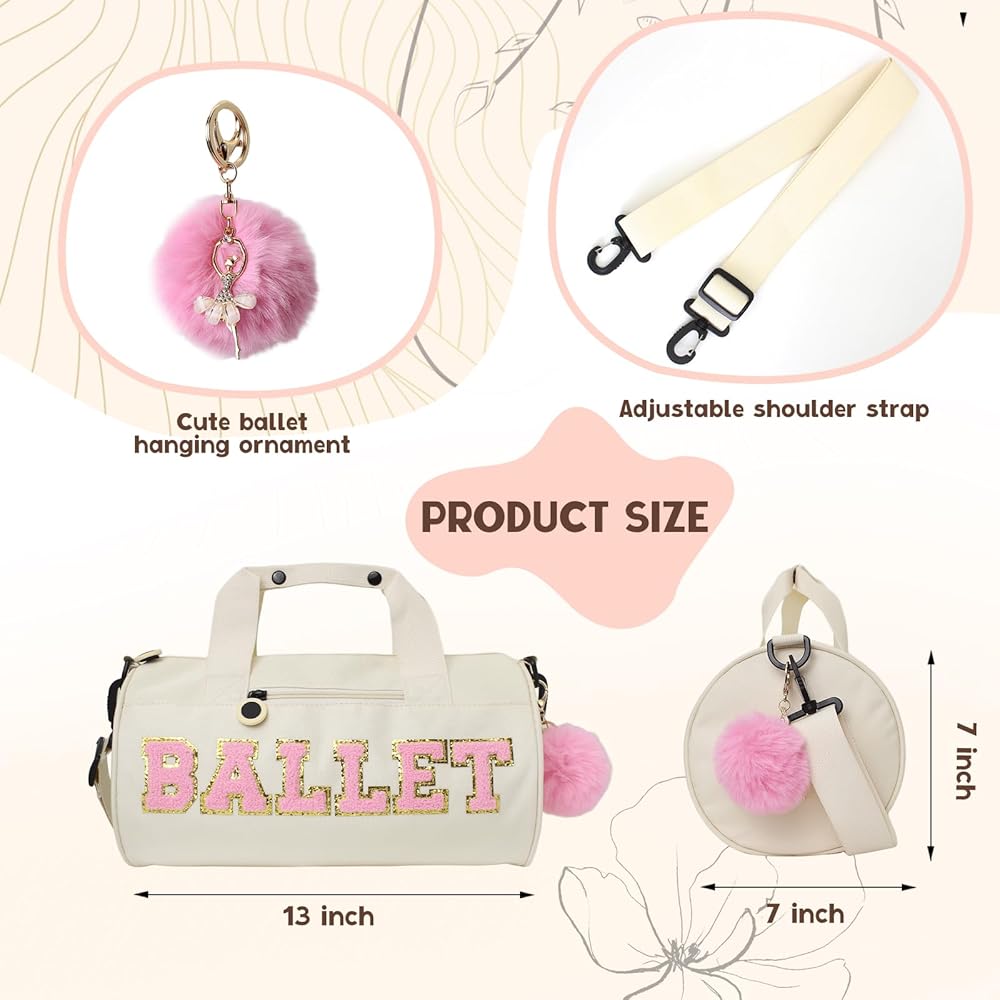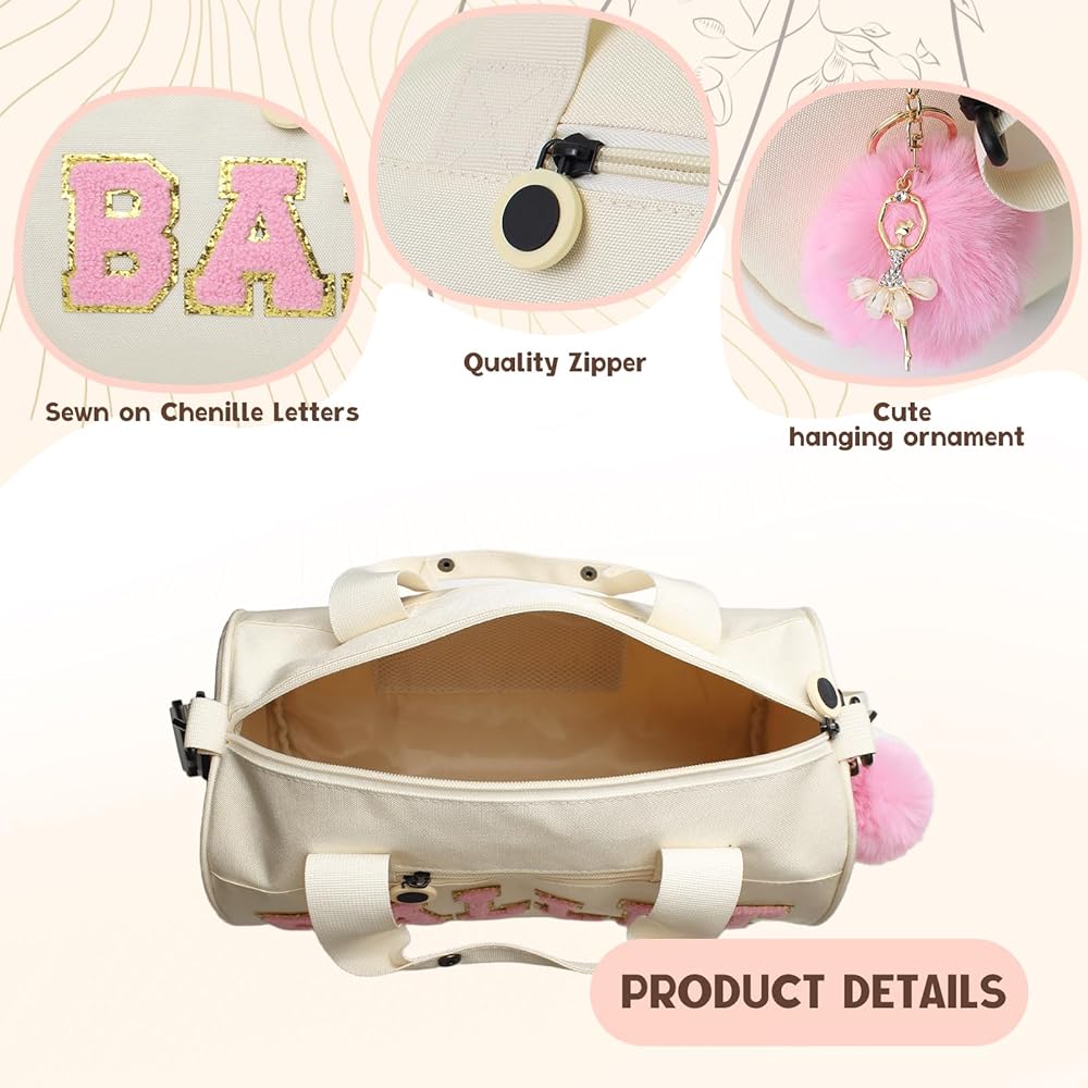 This durable, water-resistant dance bag features vibrant chenille letters, Plush Pendant, smooth zippers, and versatile straps. Perfect for dance, gym, travel, and gifting.