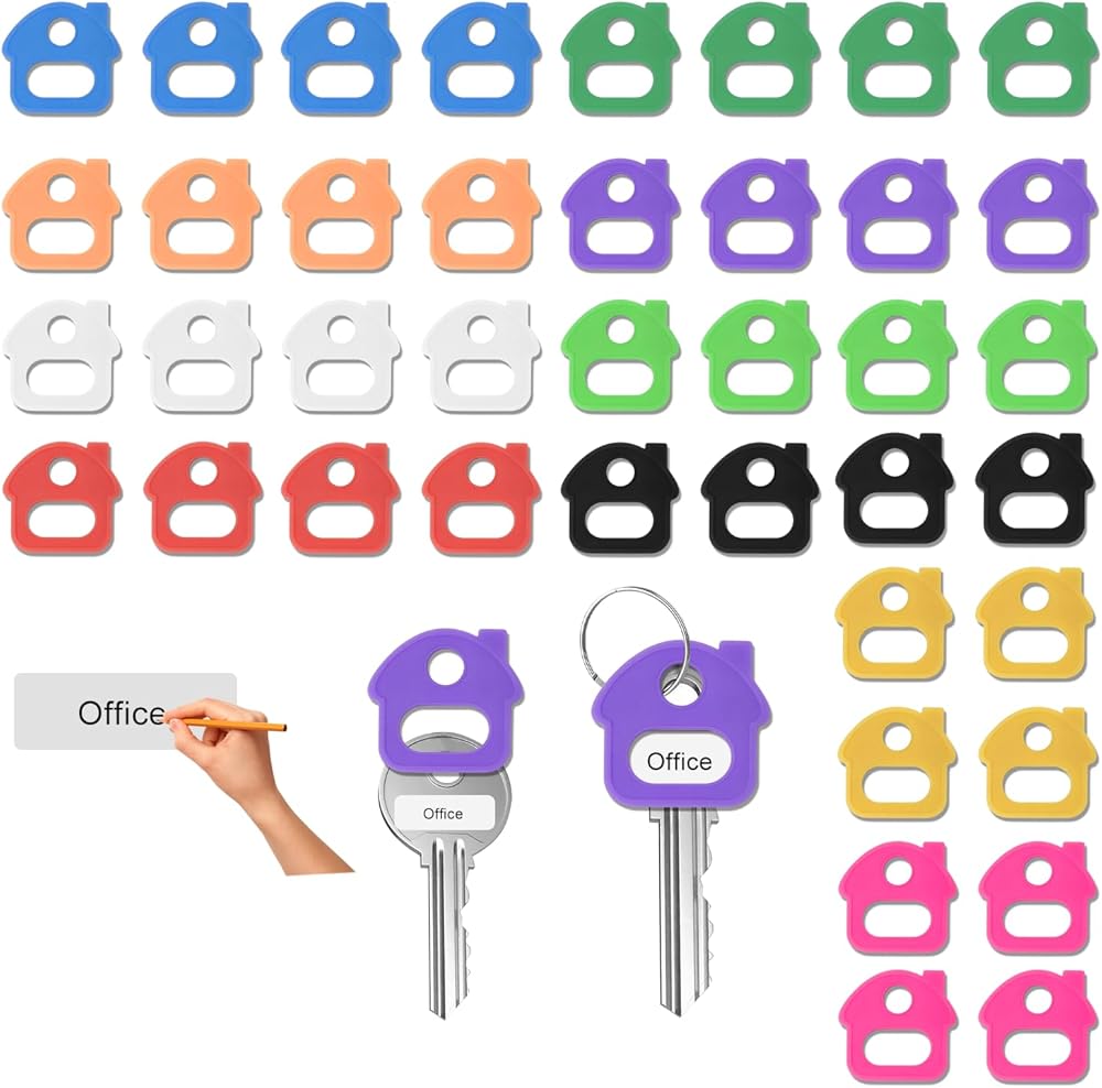 【علامات المفاتيح مع الملصقات والحلقة】: تتميز كل علامة مفاتيح بورق فارغ قابل للكتابة لوضع العلامات. وتسمح لك النافذة الشفافة برؤية الملصق بوضوح وتحديد المفاتيح في لمحة.