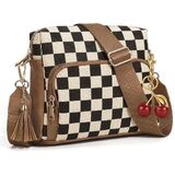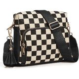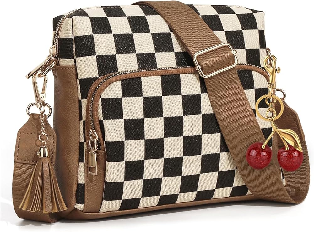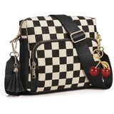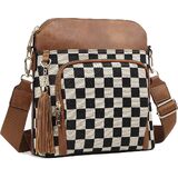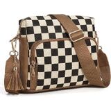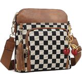 【Premium Material】This checkered crossbody purses for women is crafted from premium PU leather+Canvas, offering a soft and comfortable texture. It is built to last, while also being incredibly easy to clean and maintain.