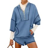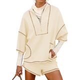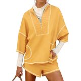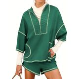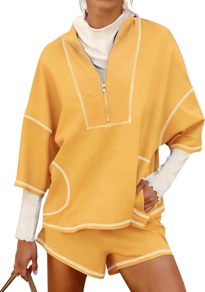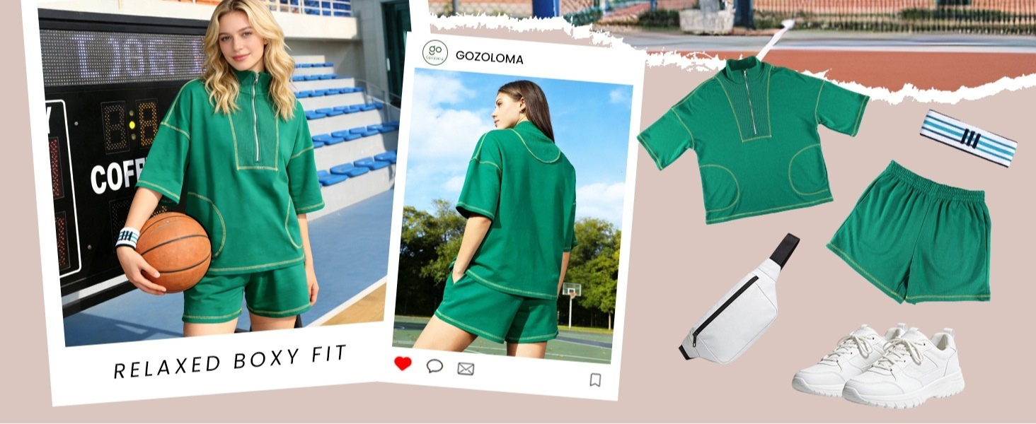 السمات: طقم متطابق من قطعتين مع خياطة متباينة: مقاس مريح، نصف كم، خصر مرن، جيوب جانبية. تم تصميم هذه المجموعة من نسيج مزيج القطن ذو اللون الصلب ومرتفعة بخياطة متباينة جريئة على طول الدرزات. تخلق المجموعة مظهرًا منسقًا وبسيطًا مع أجواء صيف 2026 الرياضية الأنيقة.