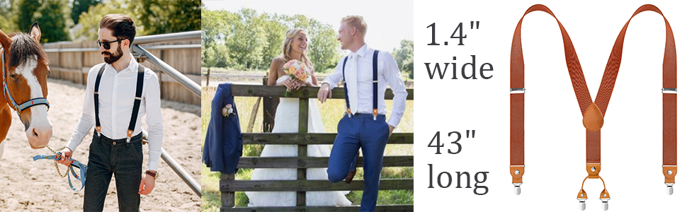 - مقاس واحد، طول 43 بوصة، عرض 1.4 بوصة، نطاق طول قابل للتعديل للحمالات للرجال من 24 إلى 43 بوصة