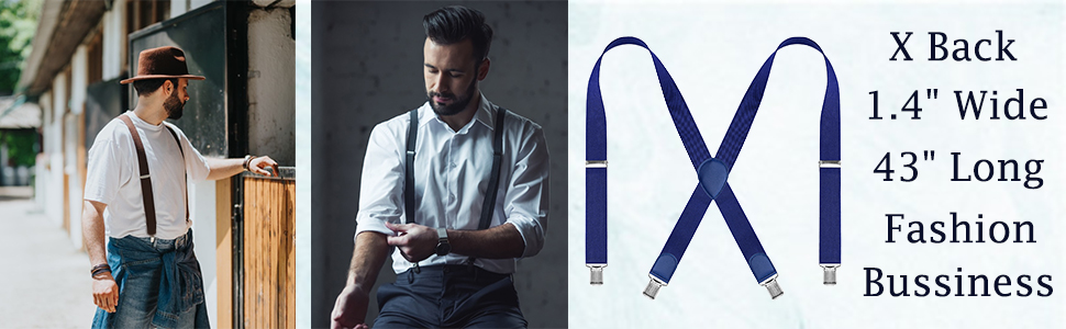 حمالات X-Back للرجال بعرض 1.4 سم قابلة للتعديل مع مشابك شديدة التحمل