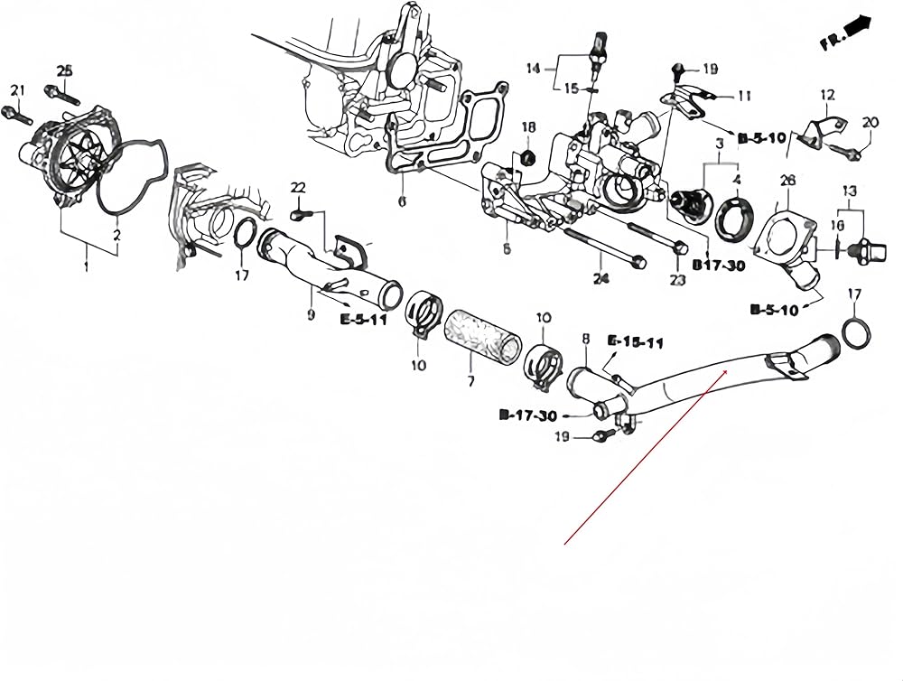 أنابيب تبريد المياه لخط الأنابيب، مناسبة لسيارة Honda Civic Vii 2001-2005. Fr-v 2004-2009 وستريم 2000-2006 بنزين. استبدال OE #:19505-PLC-000 19505PLC000