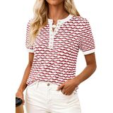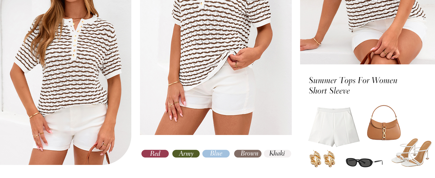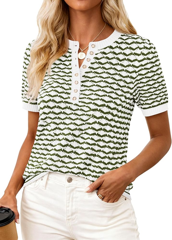 PRETTYGARDEN Short Sleeve Henley Neck Sweater Tops for Women Dressy Casual Fashion Clothing Summer Clothes