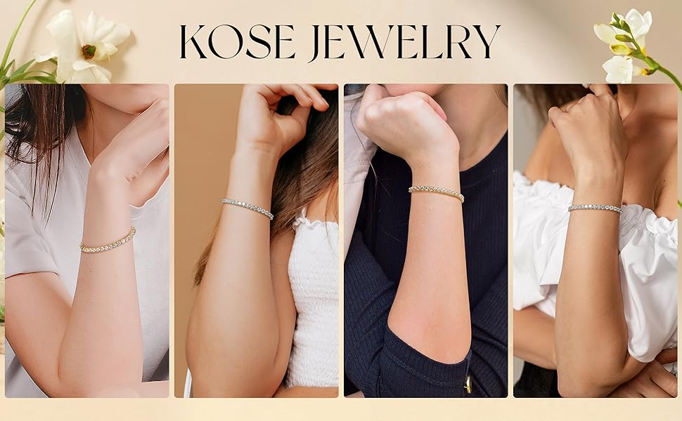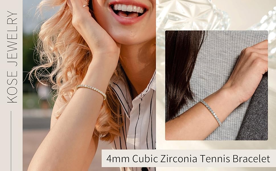Kose classic tennis bracelet plated with 3-layer gold/white gold plating, with better corrosion resistance and can last for a long time without fading color.