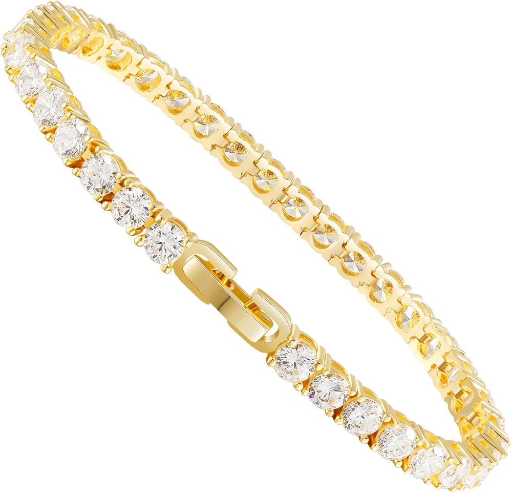 KOSE Tennis Bracelet for Women | 4MM/5MM Cubic Zirconia | 18K Gold/White Gold Plated Classic Bracelet | Size 6/6.5/7 inches