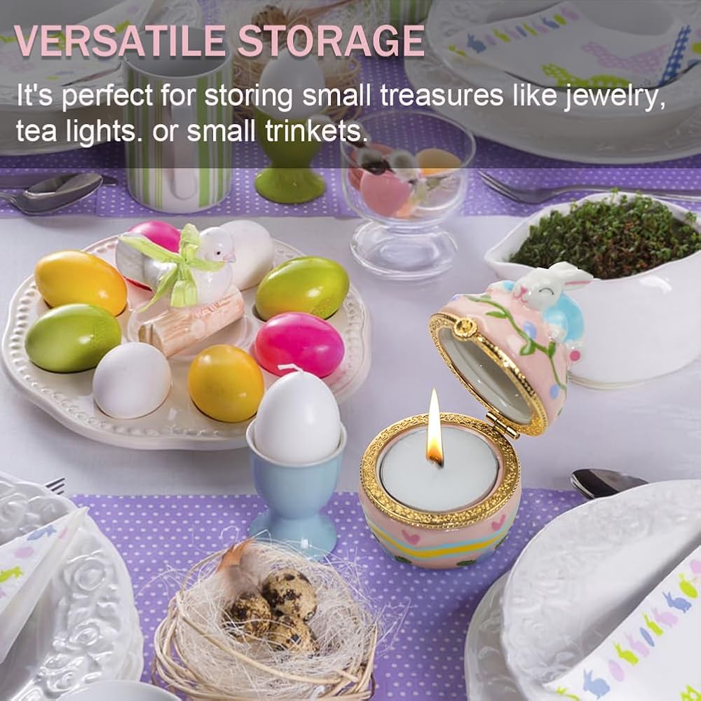 صندوق حلية على شكل بيضة أرنب عيد الفصح - حامل شموع ضوء الشاي مطلي يدويًا، منظم مجوهرات وتذكارات بمفصلات، ديكور منزلي على شكل أرنب، فكرة هدية لجميع الأعمار