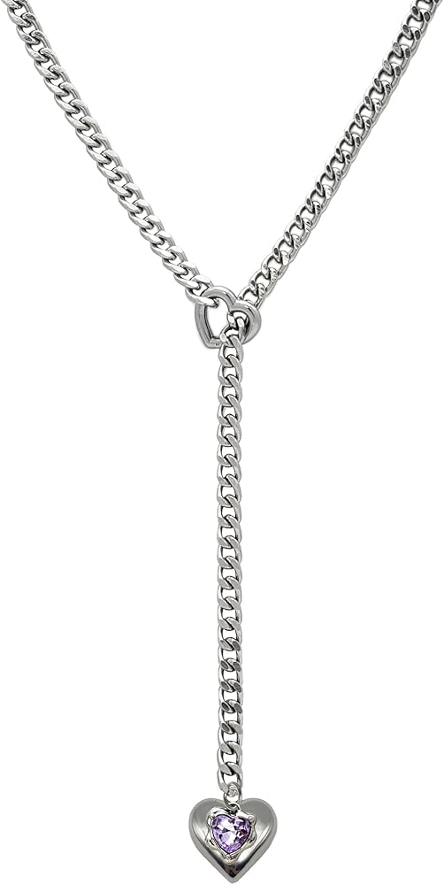 Stylish Design: This slip chain necklace features a detachable heart O-ring with a refined clasp—easy to put on and take off. Adorned with a heart-cut gemstone that shines vividly under the light, it adds a pop of color and charm to your outfit while giving your look a hint of mystery and elegance.