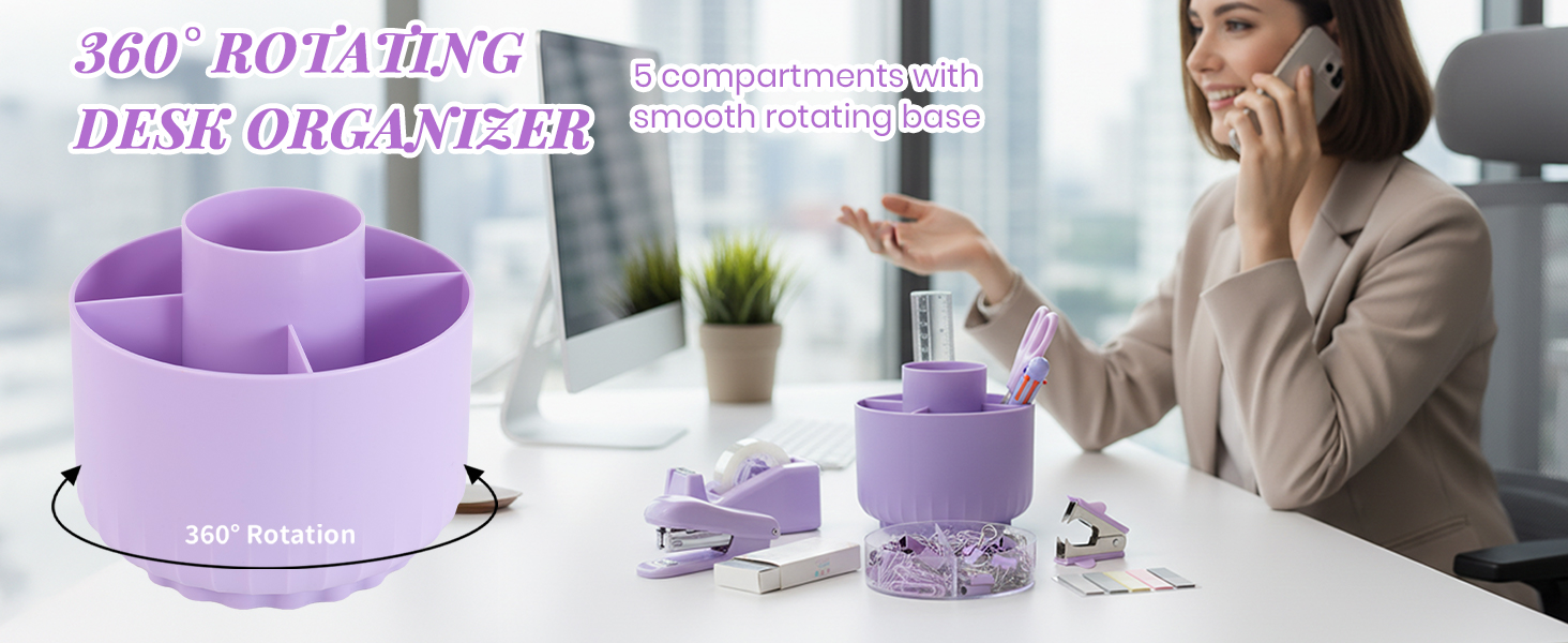 [منظم مكتب دوّار 360 درجة]: قل وداعًا لسطح المكتب الفوضوي، مما يجعل مكتبك مرتبًا ومنظمًا. مصمم للطلاب والمعلمين ومحترفي المكاتب. تلبي هذه المجموعة الشاملة جميع أساسيات مكتبك اليومية