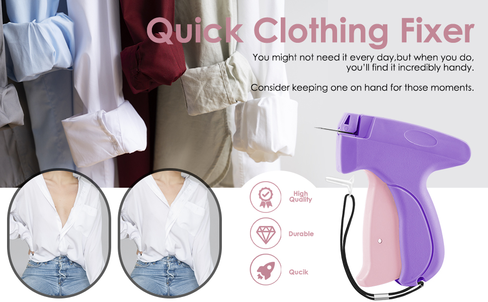 أداة الخياطة: عندما يكون لديك مسدس الخياطة هذا، يمكنك إصلاح الملابس بسرعة في حالات الطوارئ. يعمل بشكل جيد على الأقمشة الناعمة مثل الصوف والكتان والدنيم والبوليستر واللحاف. ومع ذلك، فهو غير مناسب للأقمشة الحساسة مثل الحرير