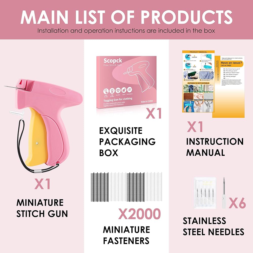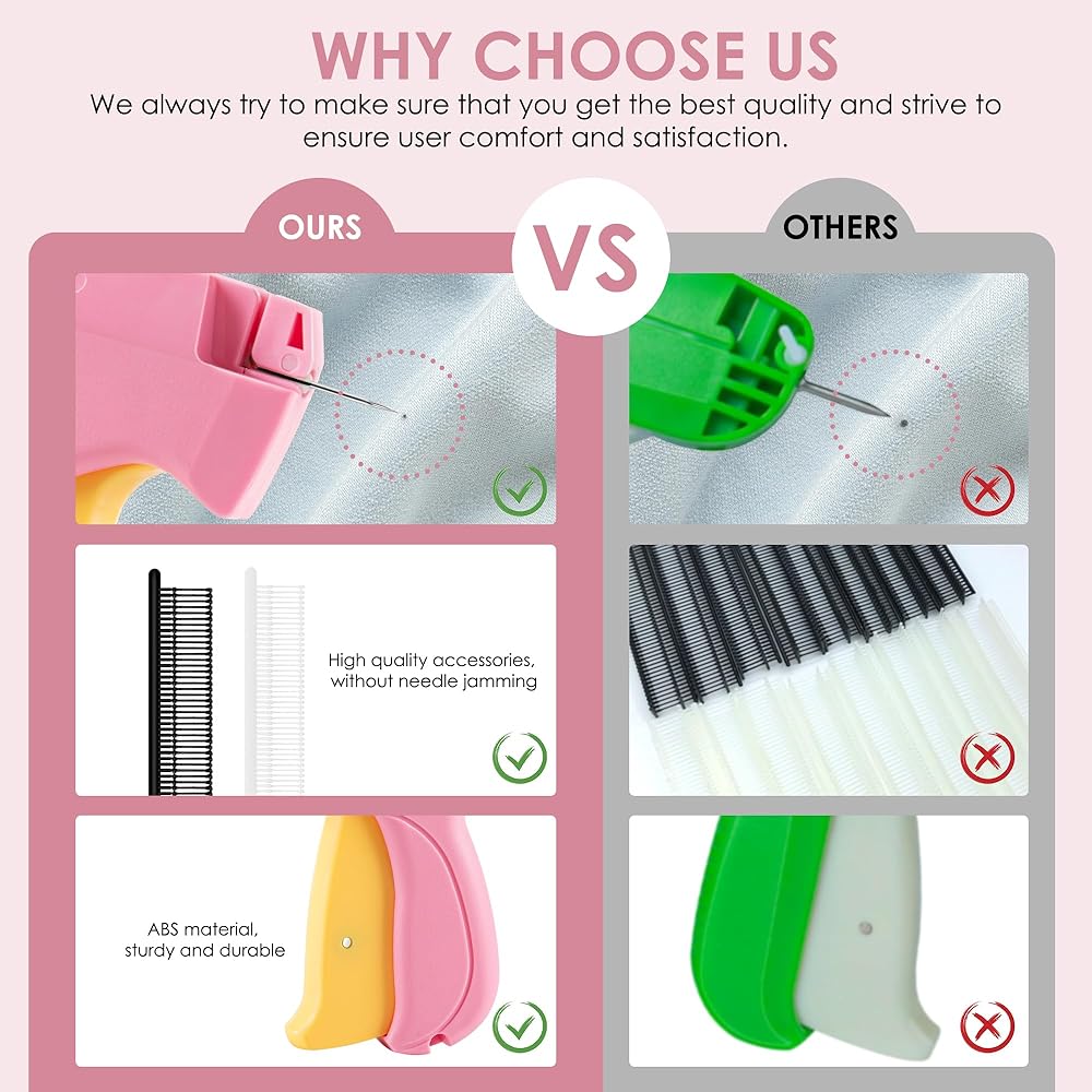 مادة فاخرة: مصنوعة من البلاستيك الصلب، مسدس الخياطة هذا صغير وخفيف الوزن ومتين. الإبرة المصنوعة من الفولاذ المقاوم للصدأ ناعمة ومدببة، وتمر بسهولة عبر الأقمشة. يضمن التصميم المريح الراحة أثناء فترات الاستخدام الطويلة