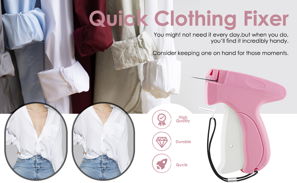 أداة الخياطة: باستخدام مسدس الخياطة هذا، يمكنك إصلاح الملابس بسرعة في حالات الطوارئ. يعمل بشكل جيد على الأقمشة الناعمة مثل الصوف والكتان والدنيم والبوليستر واللحاف. ومع ذلك، فهو غير مناسب للأقمشة الحساسة مثل الحرير