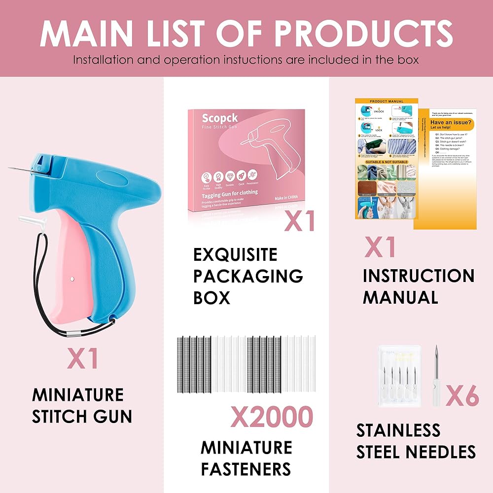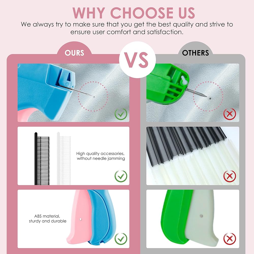 مادة فاخرة: مصنوعة من البلاستيك الصلب، مسدس الخياطة هذا صغير وخفيف الوزن ومتين. الإبرة المصنوعة من الفولاذ المقاوم للصدأ ناعمة ومدببة، وتمر بسهولة عبر الأقمشة. يضمن التصميم المريح الراحة أثناء فترات الاستخدام الطويلة