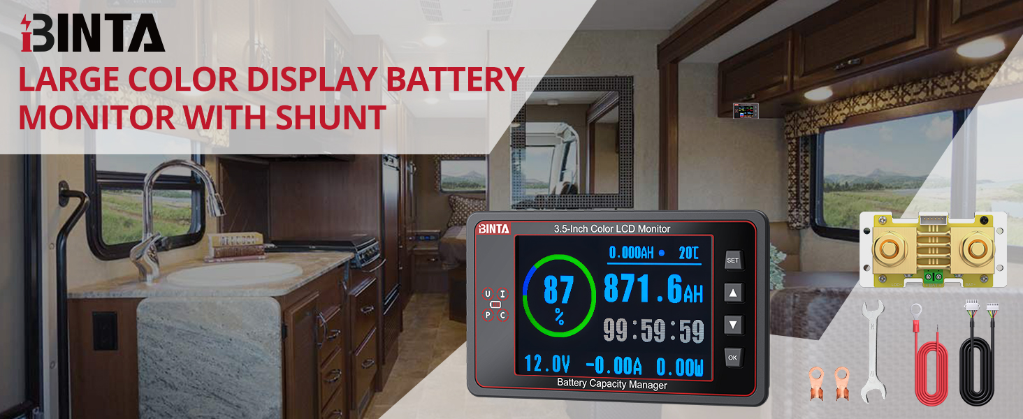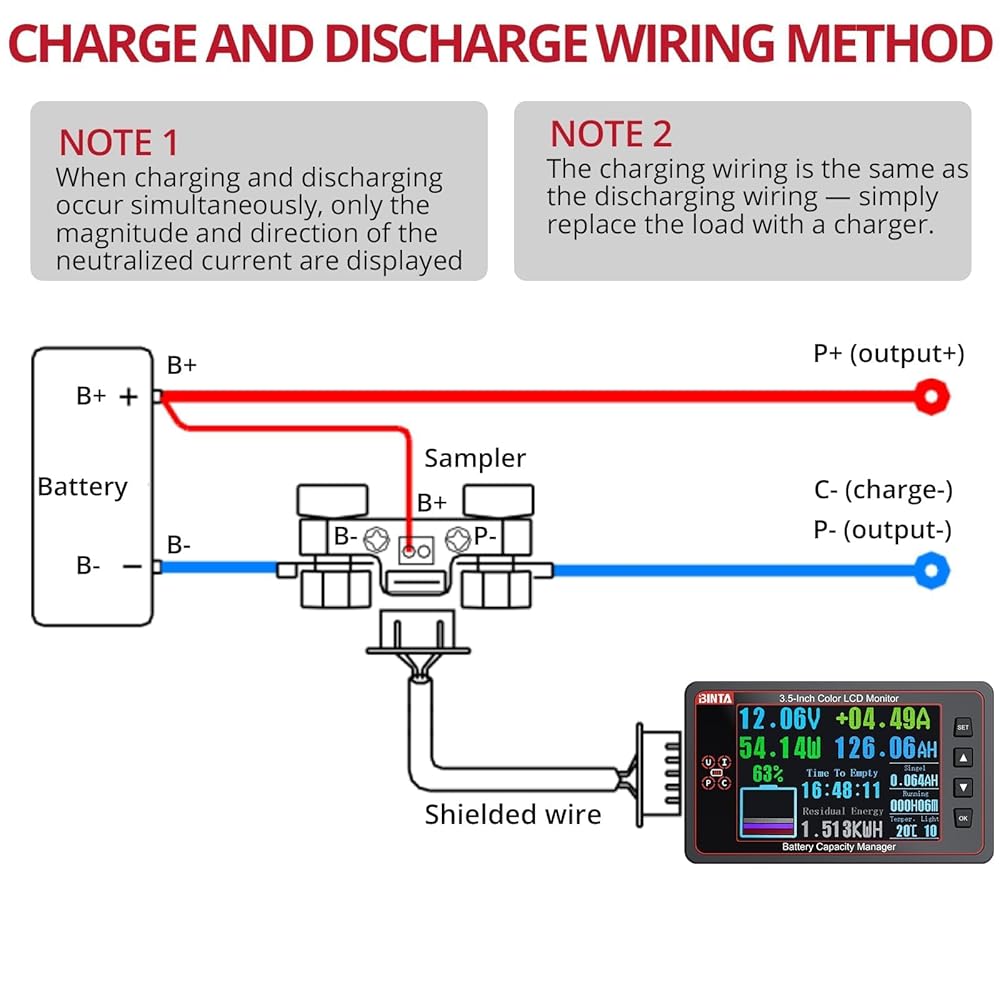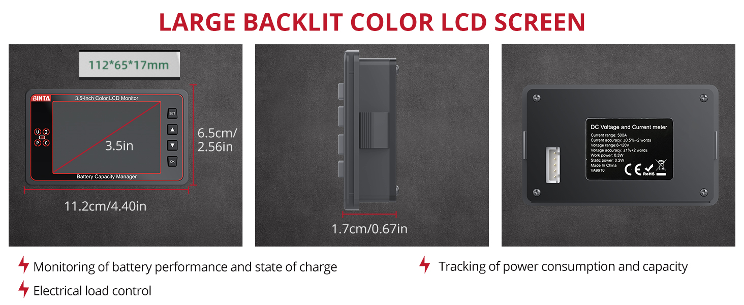 【شاشة بإضاءة خلفية واضحة】شاهد كل التفاصيل على شاشة LCD ملونة ساطعة مقاس 3.5 بوصة مع سطوع إضاءة خلفية قابل للتعديل يتم التحكم فيه بواسطة المفاتيح لأعلى/لأسفل. نظرًا لأن جهاز مراقبة تحويل البطارية هذا مصنوع من مادة PVC القوية المقاومة للهب، فإنه يظل ثابتًا حتى في الظروف الصعبة