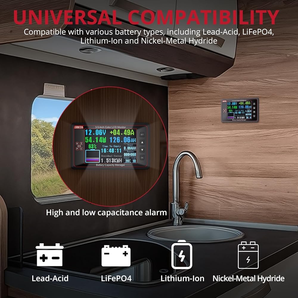 توافق واسع: متوافق مع بطاريات LiFePO4، وبطاريات الليثيوم أيون، والجل، والمختومة، والمغمورة، يعمل مقياس جهد البطارية هذا بأقل استهلاك للطاقة. مثالية لمراقبة البطاريات في المركبات الترفيهية والقوارب وعربات الجولف والدراجات النارية والسيارات وأجهزة الطاقة الشمسية والمقطورات والمزيد