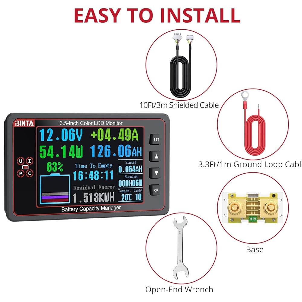 【سهلة التركيب】يتضمن عداد البطارية كابلًا محميًا بطول 10 أقدام، وسلك حلقة أرضية، ومفتاح تركيب، ودليل مستخدم كامل. تتيح هذه المجموعة المتكاملة إمكانية الإعداد السريع مع وضع مرن مع تقليل تداخل الإشارة