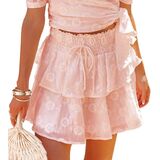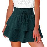تصميم ذو طبقات مكشكشة مطرزة بطبقة مزدوجة: شورت قصير فضفاض للفتيات المراهقات مع حزام خصر مرن مصنوع من نسيج الكتان القطني، ناعم ومريح، لا يتخلص ولا يمنحك شعورًا بالسراويل الداخلية الجدة.