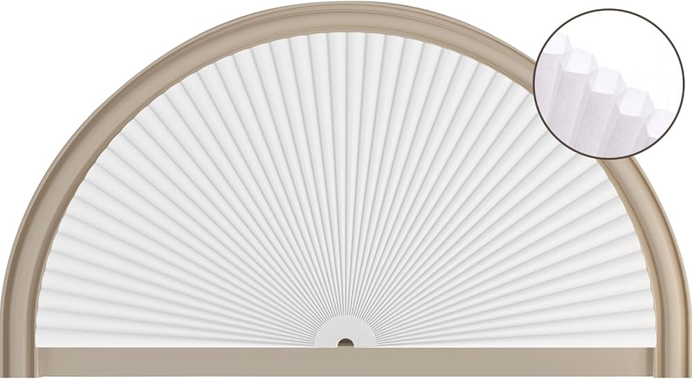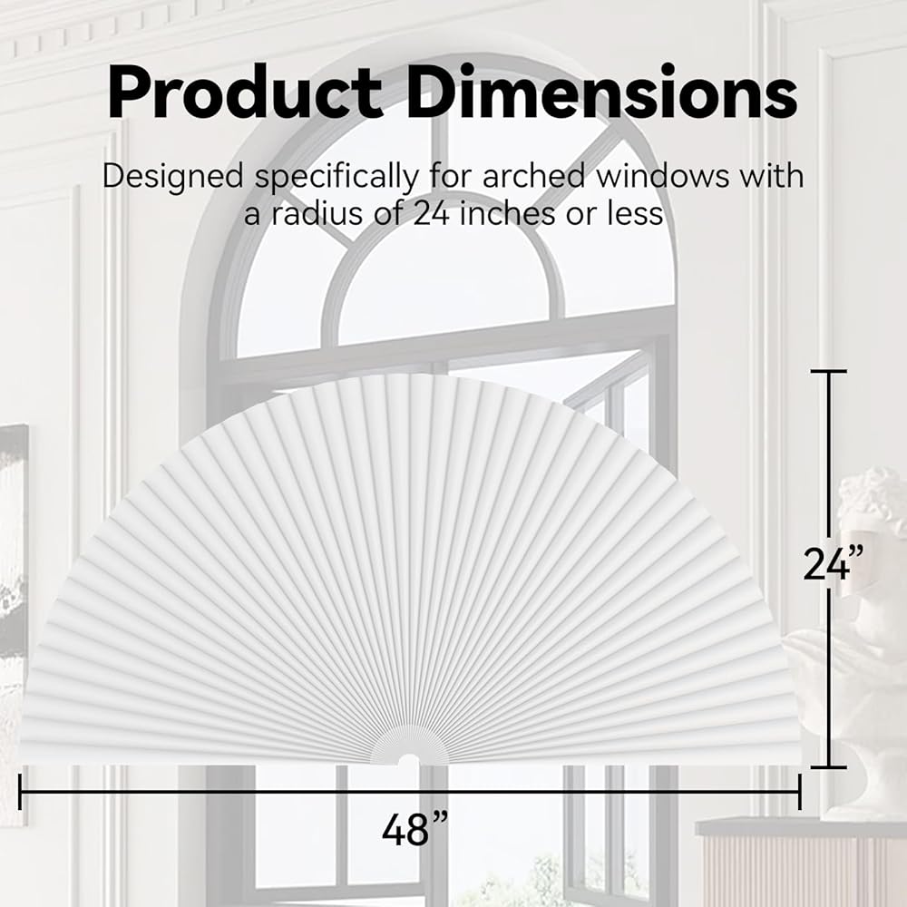 ظلال نافذة نصف دائرة، ستائر ترشيح الضوء الخلوية، ظلال نافذة نصف دائرة، بدون أسلاك لظل نافذة نصف القمر، بدون حفر، ستائر ترشيح الضوء على شكل قرص العسل، سهلة القطع والتركيب (أبيض 24 بوصة × 48 بوصة)