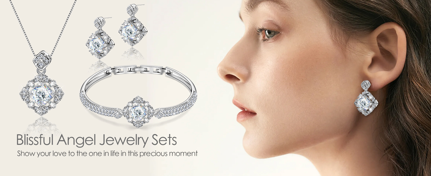 مجموعة مجوهرات نسائية من Blissful Angel، طقم سوار وقلادة وأقراط، مجموعة مجوهرات كريستال للزوجة والصديقة أو الأمهات، فكرة هدية للنساء المميزات في الحياة
