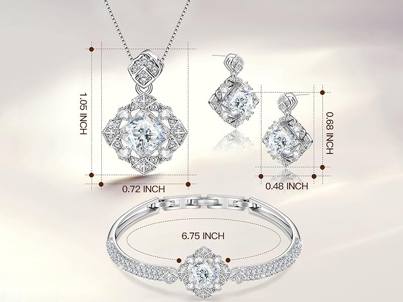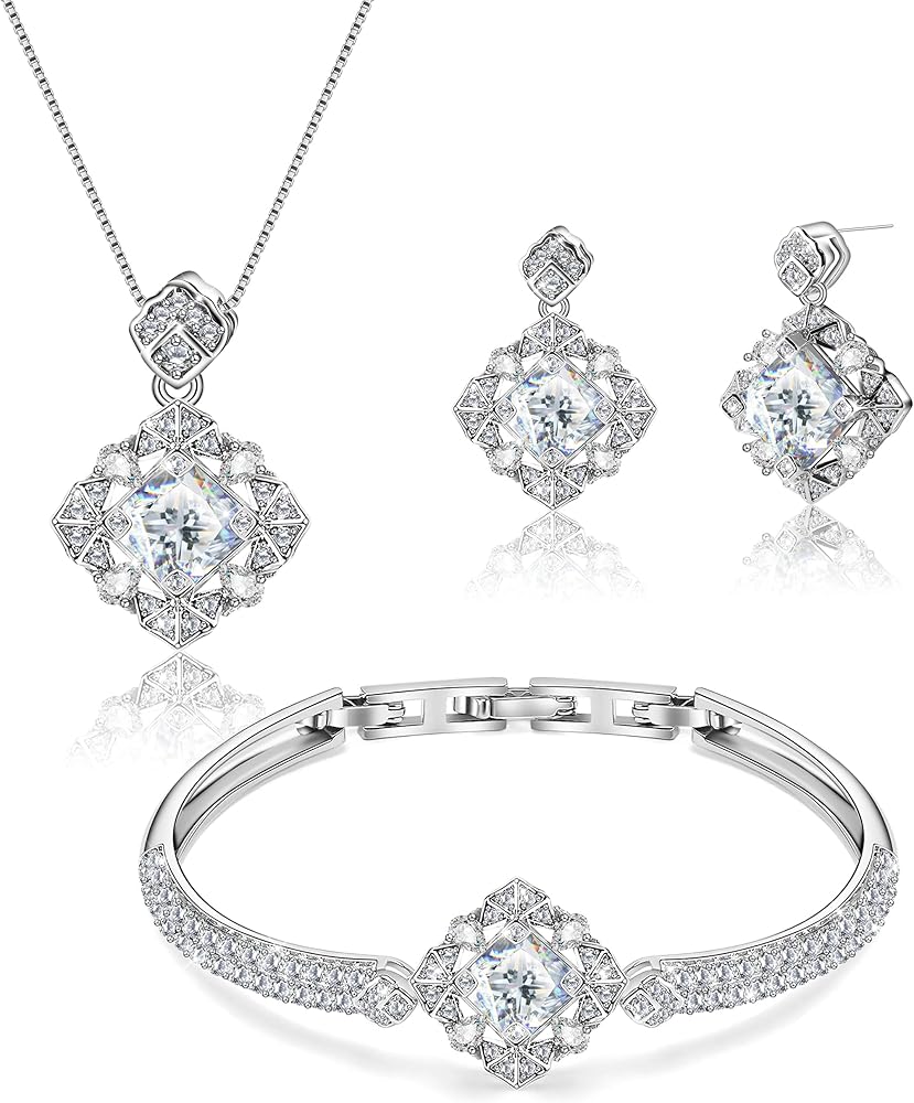 【Exquisite Matching Set】This stunning jewelry set features a 6.75-inch bracelet with two extra extensions, a 17-inch necklace with a 2-inch extender, and earrings (0.68" H x 0.48" W). The square-cut 57-facet crystals sparkle with exceptional brilliance, creating a cohesive and elegant look that's sure to turn heads.