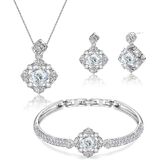 Crafted with elegance and precision, this exquisite jewelry set includes a bracelet, necklace, and earrings—all designed to dazzle. The bracelet measures 6.75 inches with an extension option, while the pendant and earrings feature heart-shaped stones with 57 expertly cut facets for brilliant sparkle. Plated in 18K white gold and made with lead-free and nickel-free brass, the set meets SGS standards and promises lasting wear. Perfect for both casual and formal occasions, it comes beautifully packaged in a gift box—ideal for Christmas, birthdays, anniversaries, or Mother's Day. An unforgettable gift that celebrates love and style.