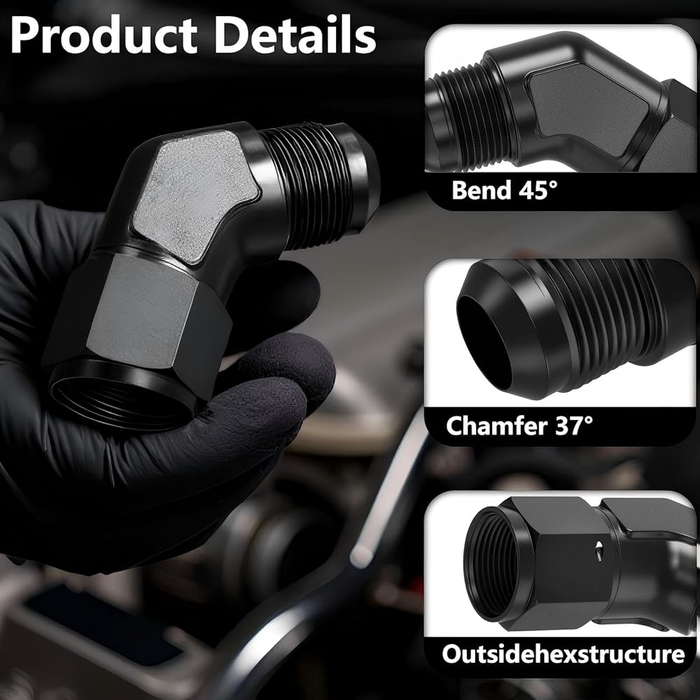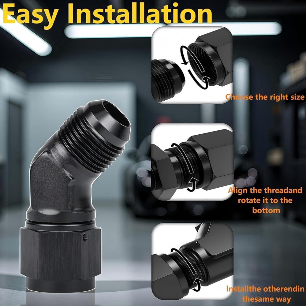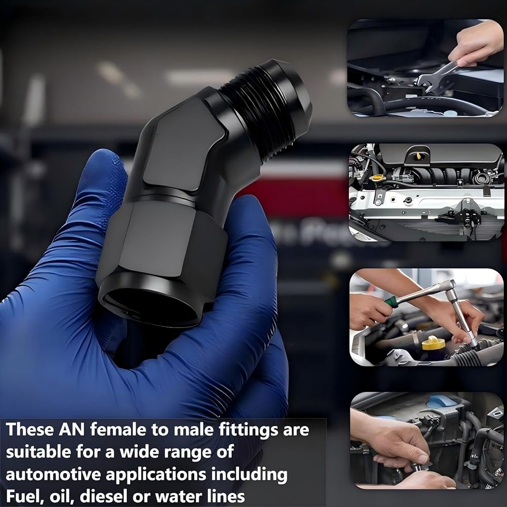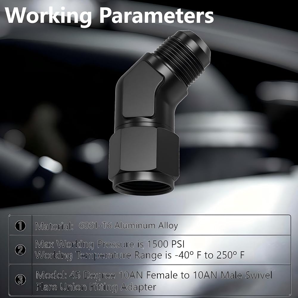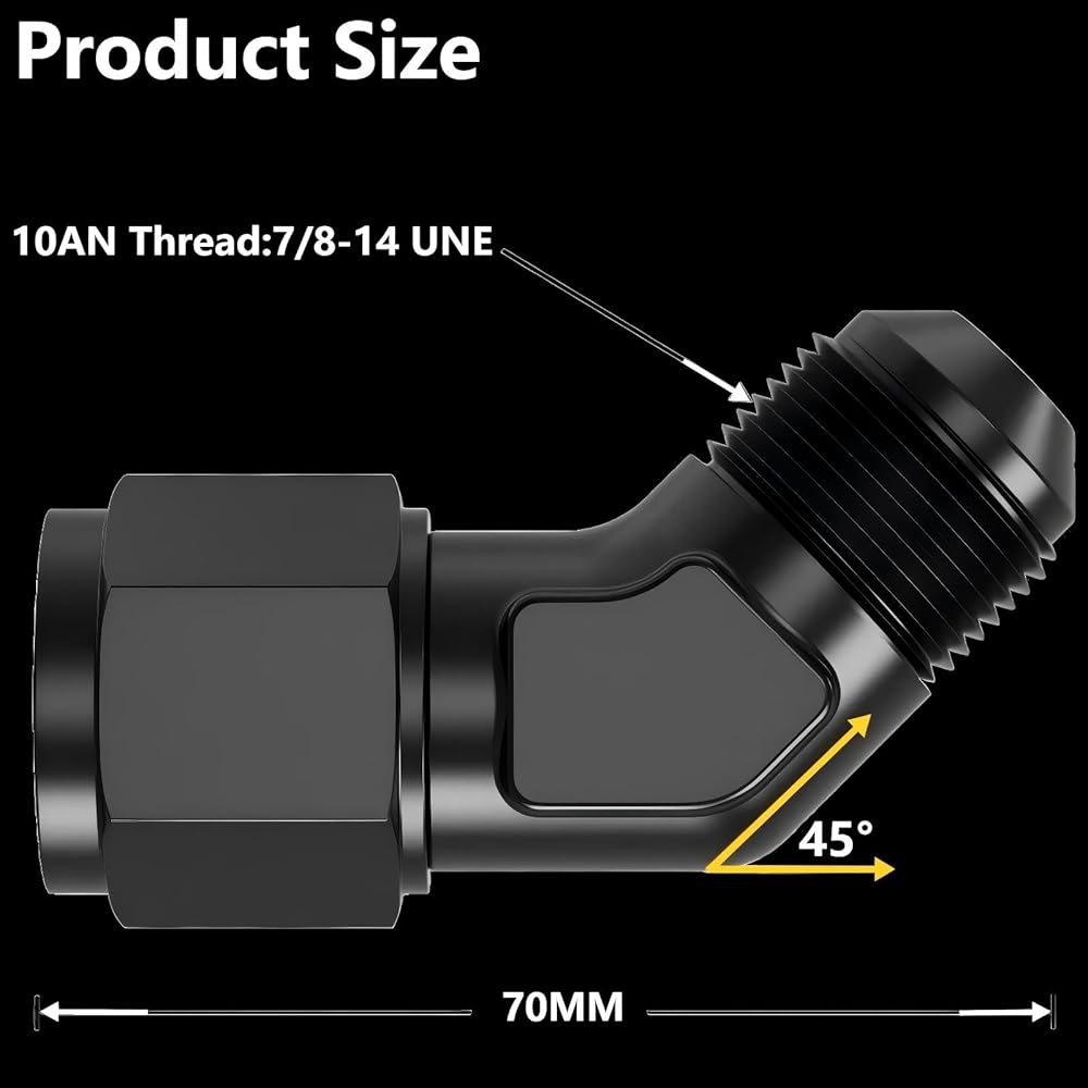 Package includes - 1PCS X 10AN Female to Male 45 Degree Elbow Swivel Hose Fitting (360° swivel)