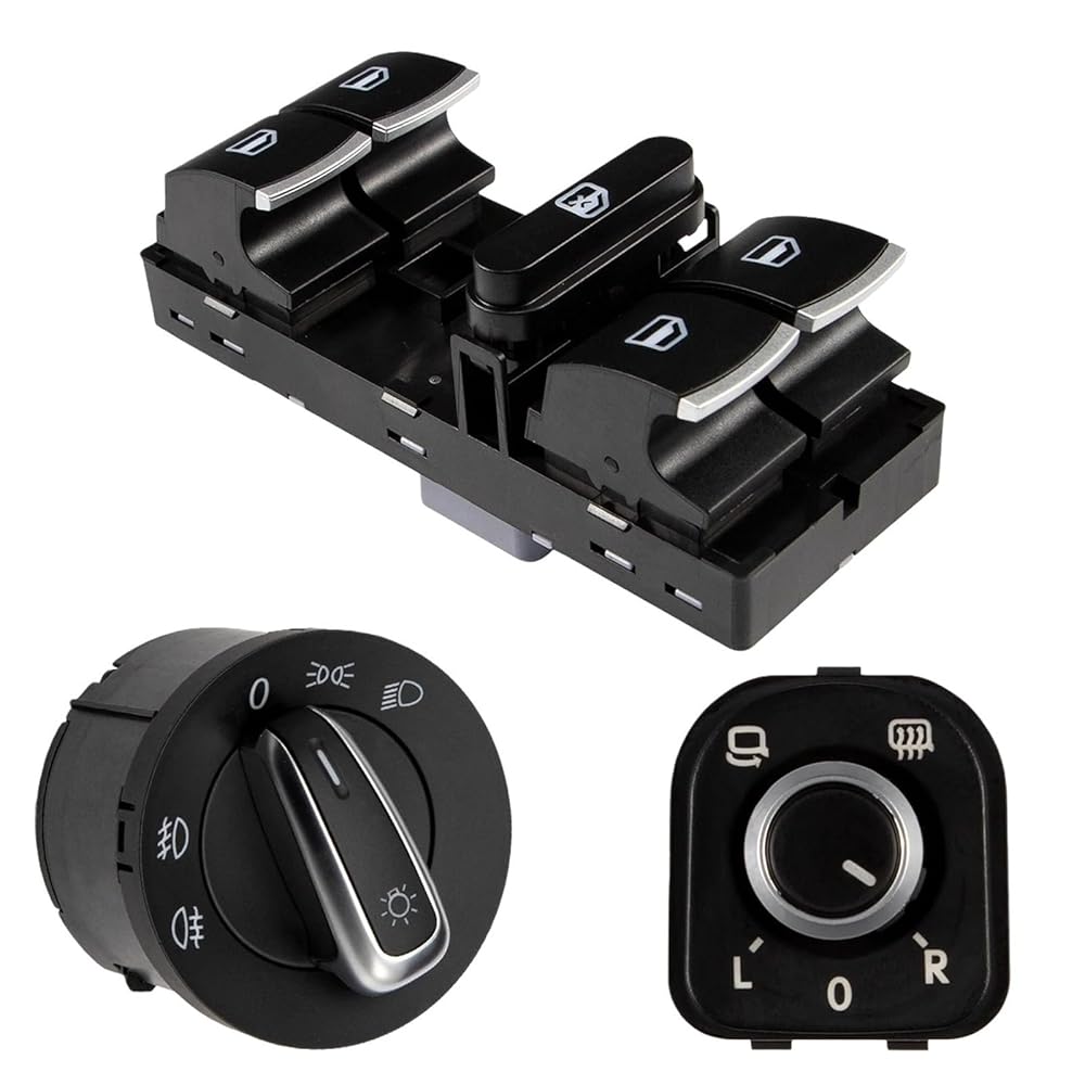 5ND959857 6 Pcs/Kit Chrome Auto Window Switch Headlight Switches Control Power Lift Compatible With VW Golf GTI 5 Jetta
