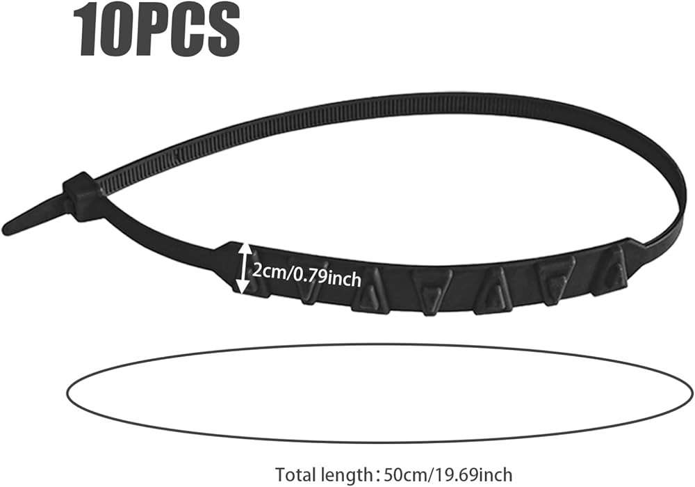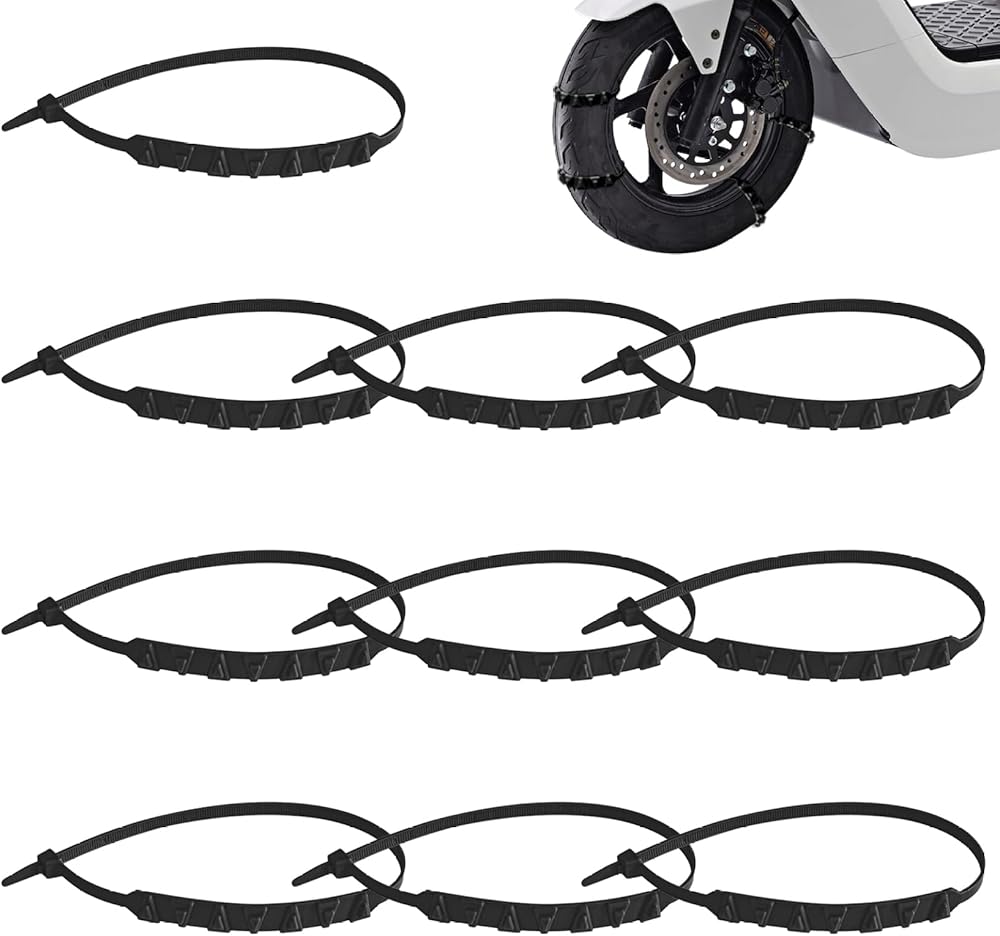 These snow chains offer a practical solution for enhancing safety and traction during winter driving. Constructed from and low-noise nylon material with 20 anti-skid teeth, they provide enhanced grip and traction on snowy or icy roads, ensuring safer travel for motorcycles and electric bikes. With universal compatibility for two-wheel and three-wheel vehicles, these snow chains are suitable for a wide range of transportation modes. Their easy installation process and package of 10 snow chains with individual dimensions of about 50x2cm (19.69x0.79 inches) make them a convenient and versatile choice for adding anti-skid effects to tires. These snow chains offer a reliable and effective solution for navigating winter road conditions with confidence.