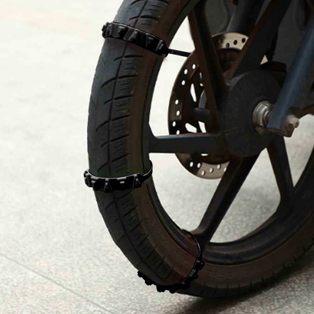 • Enhanced Safety for Winter: These snow chains for motorbike effectively reduce slippage and enhance traction when riding motorcycles or electric bikes in snowy or icy conditions, ensuring safer driving experiences during winter.