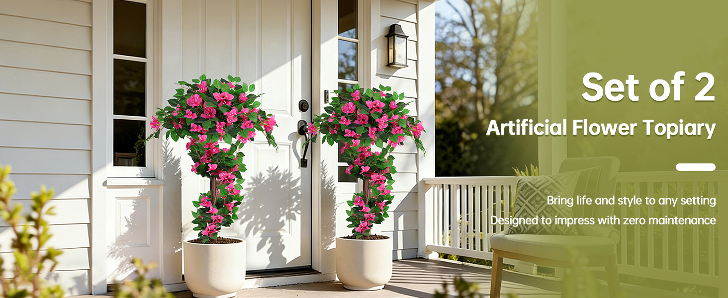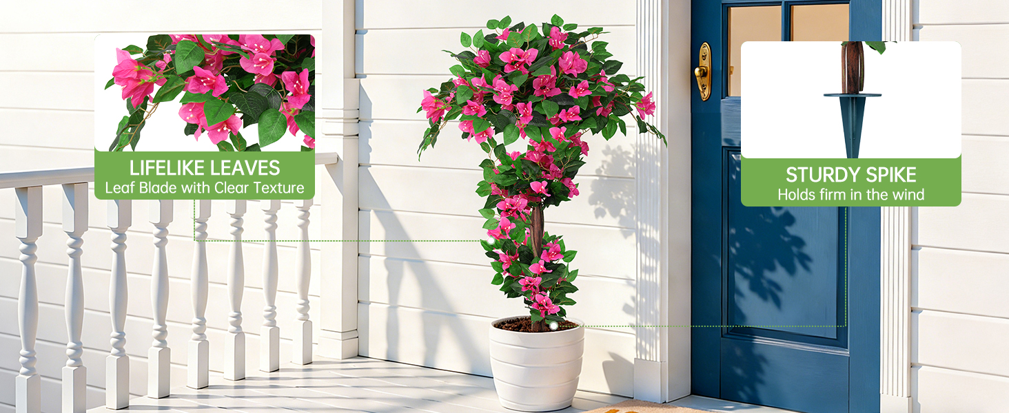 سهلة التركيب: تتضمن أوتاد أرضية متينة للإعداد البسيط. ضع هذه الشجرة الموضعية بسهولة في الأواني أو أدخلها مباشرة في التربة، مما يوفر تركيبًا مرنًا وجمالاً زهريًا فوريًا دون متاعب.