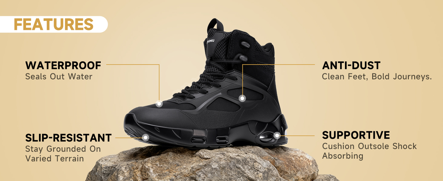 حماية موثوقة ضد الماء للبيئات الرطبة تم تصميمها باستخدام غشاء مقاوم للماء عالي الأداء، تشكل أحذية KEFUWU التكتيكية حاجزًا محكمًا ضد المطر والطين والثلج والرطوبة الأرضية، مما يحافظ على قدميك جافة ومرتاحة أثناء الدوريات التكتيكية في الطقس الممطر، أو المشي لمسافات طويلة في الريف عبر التضاريس المستنقعية، أو العمل في الهواء الطلق في الصباح الندي. يعزز تصميم الدرزة المختومة الحماية ضد الماء، مما يضمن عدم تسرب الماء حتى أثناء التعرض الطويل للظروف الرطبة.
