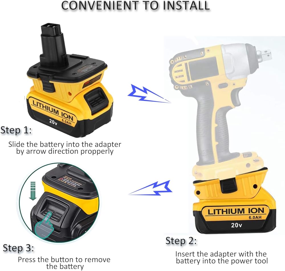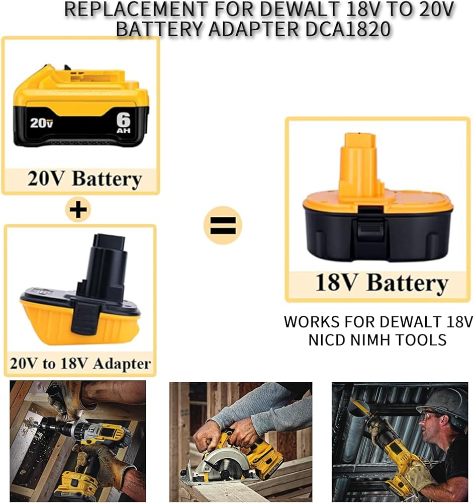 - محول Dewalt 18V إلى 20V مناسب لأدوات بطارية Dewalt 18V NiCad وNiMh. استبدال بطاريات ديوالت 18 فولت NiCad/NiMh DC9098، DC9099، DE9098، DE9503، DW9095، DW9096، DW9098، DW9099.