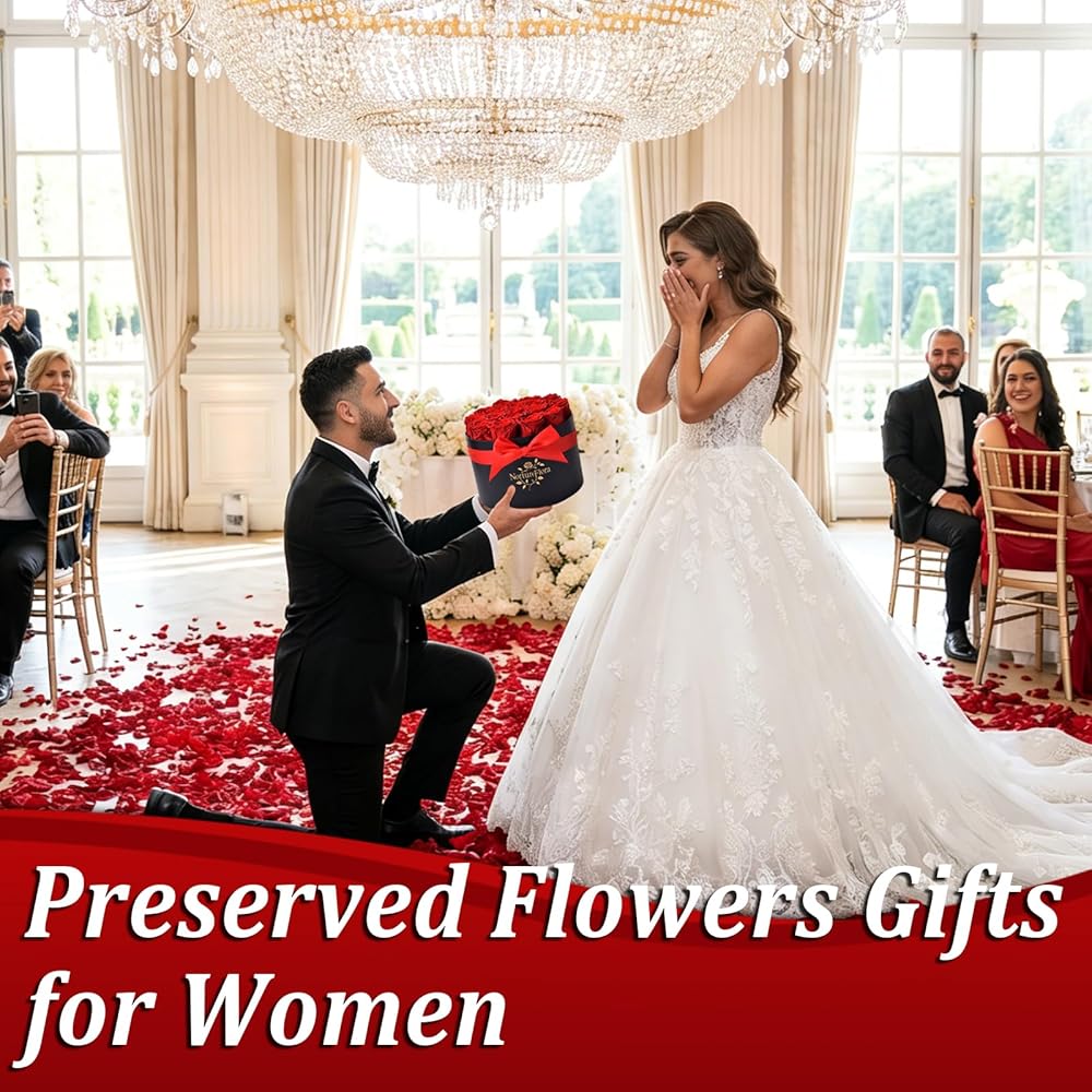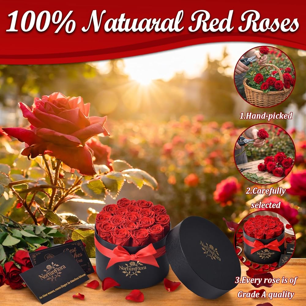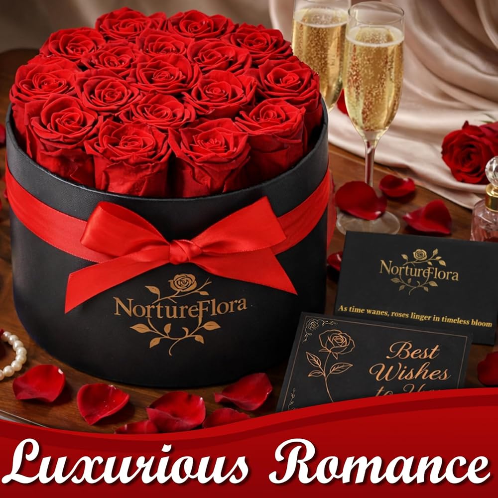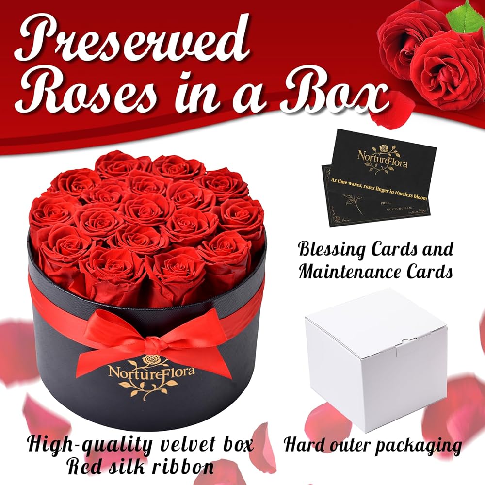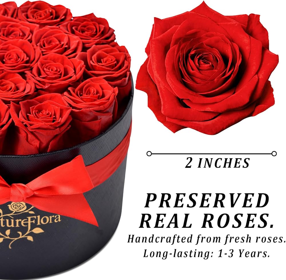 17 قطعة من هدايا الورود الحمراء المحفوظة إلى الأبد - زهور محفوظة في صندوق للنساء، زهور إلى الأبد للتسليم، صندوق هدايا عيد ميلاد الزهور لها، الذكرى السنوية، عيد الأم