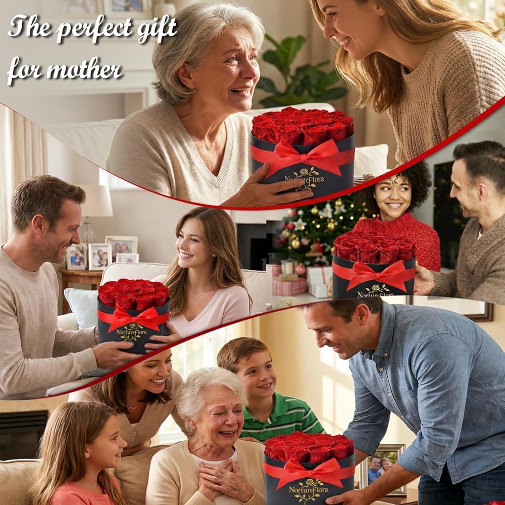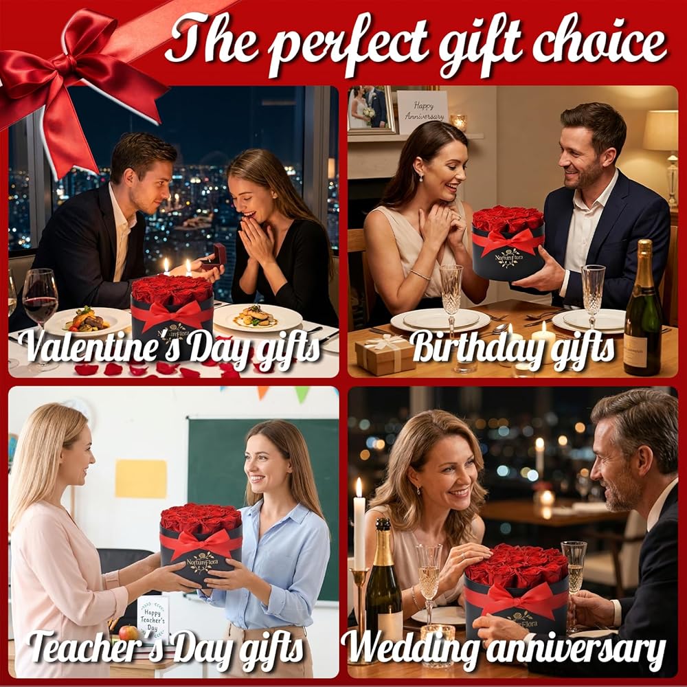 لكل لحظة خاصة: صندوق الورد الأنيق هذا هو هدية خالدة لعيد الأم، أو الذكرى السنوية، أو الكريسماس، أو التخرج، أو حفلات الزفاف، أو الانتقال لمنزل جديد، أو عيد الميلاد. مثالي للأم أو الزوجة أو الصديقة أو الأخت أو الزوجين، فهو ينقل الحب والرعاية والتشجيع بجمال ومعنى دائمين.