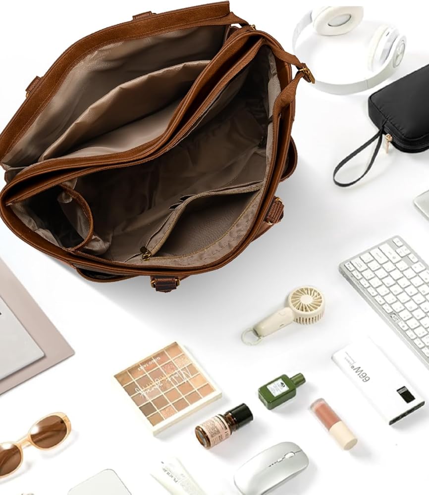 حقيبة كمبيوتر محمول للنساء مقاس 17.3 بوصة، حقائب عمل جلدية، حقيبة حمل ذات سعة كبيرة مع حامل أكواب كبير للنساء، حقائب كمبيوتر عتيقة لأجهزة الكمبيوتر المحمولة، حقيبة ممرضة المعلم، حقيبة مكتب مقاومة للماء