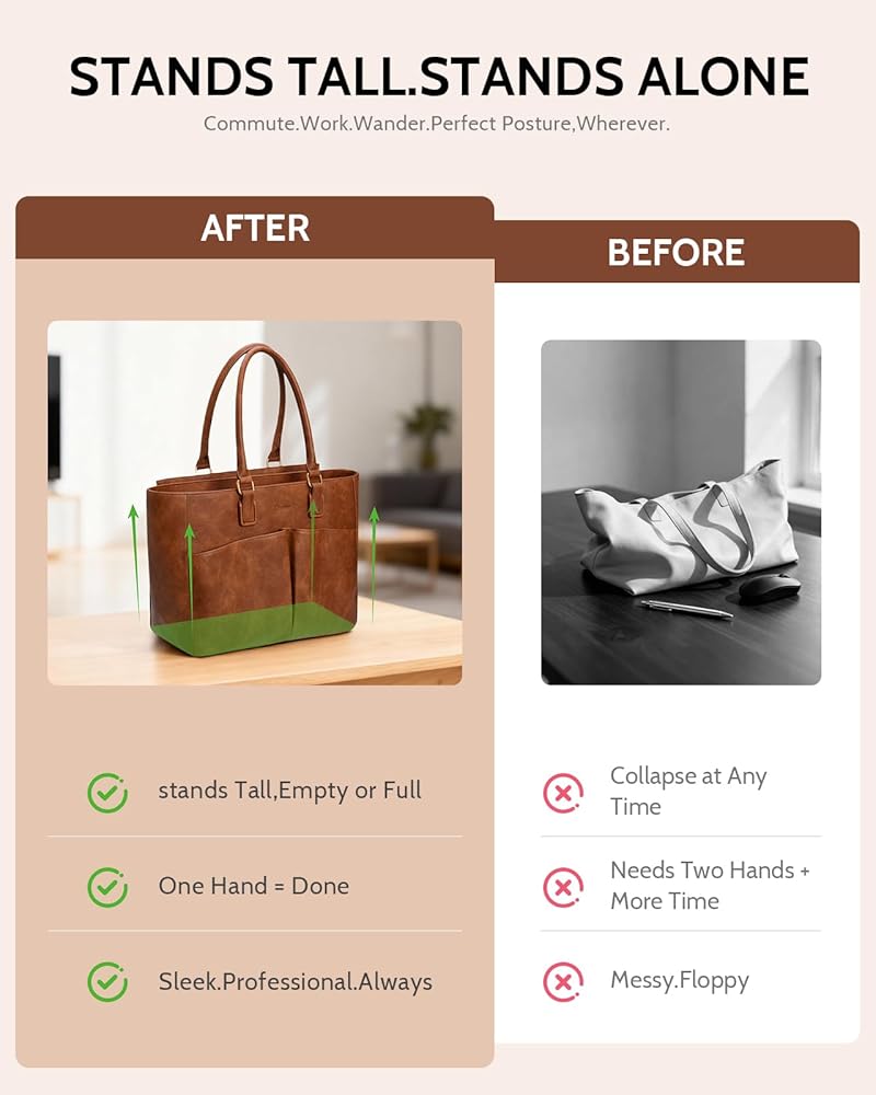 • 【حقيبة تناسب عالمك بالكامل، بشكل جميل】 بدءًا من الكمبيوتر المحمول وجهاز iPad الخاص بك إلى كوب ستانلي المفضل لديك ومجلدات A4، فإن حقيبة حمل المعلم ذات السعة الكبيرة هذه هي رفيقك اليومي الموثوق به. إنها ليست مجرد حقيبة؛ إنه مركز قيادة متنقل لحياتك الطموحة، ويحمل بكل رشاقة كل ما تحتاجه للعمل أو الفصل أو مغامرة عفوية.