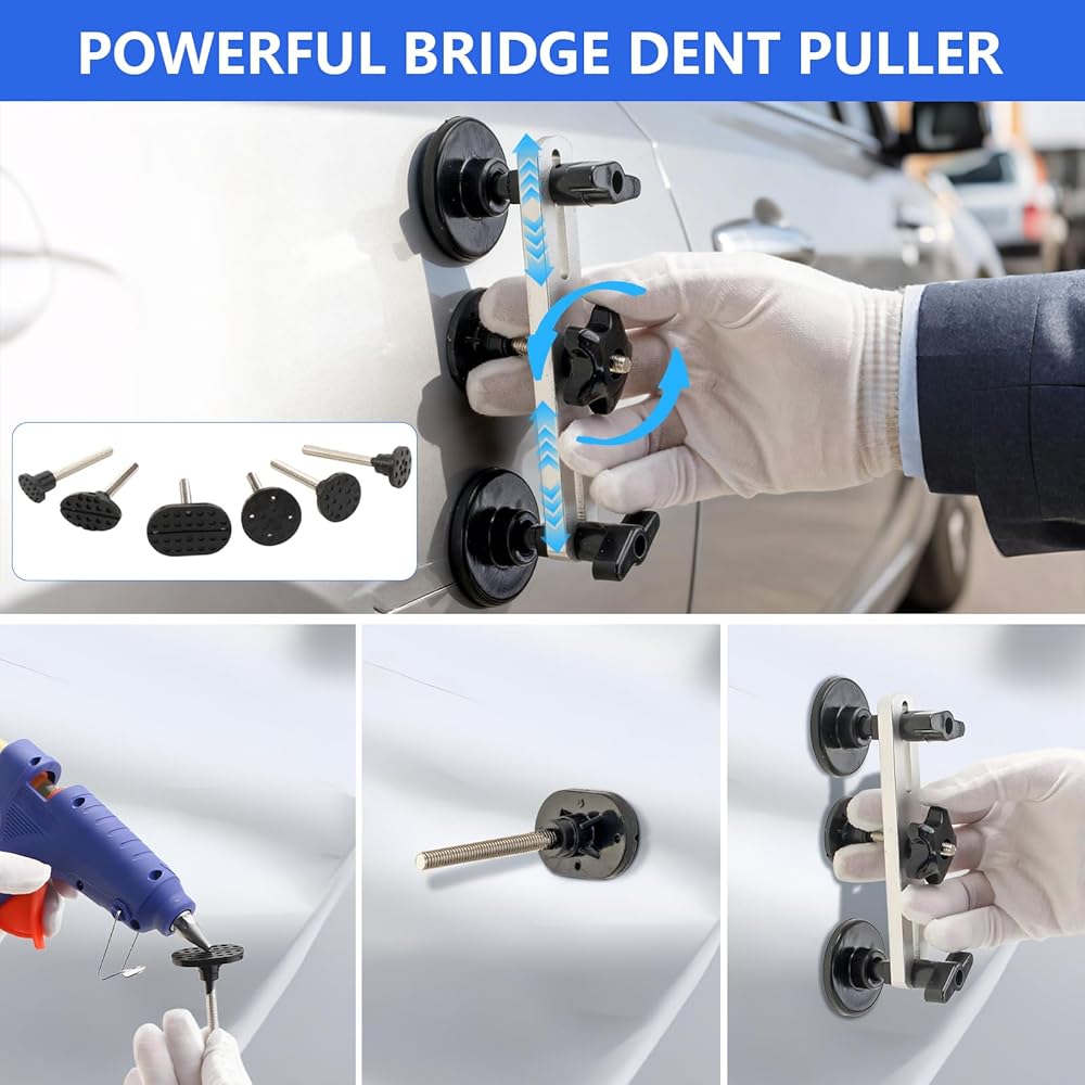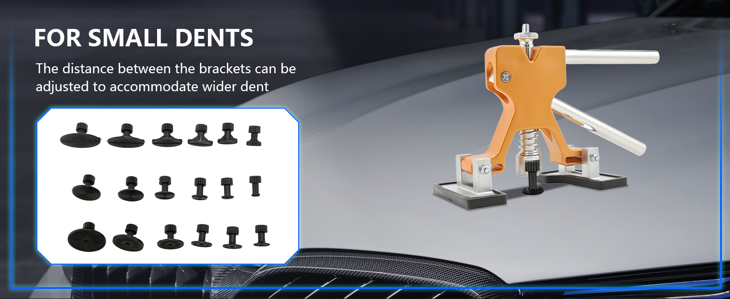 • 【أدوات إصلاح للخدوش الكبيرة والصغيرة】تحتوي مجموعة إصلاح انبعاجات السيارة ذات التصميم الخاص بنا على جسر أسود وتأتي مع رافعات ذهبية بمطاط عالي الجودة. يمكنك من خلال ضبط المسافة والارتفاع لإصلاح الخدوش الكبيرة أو الصغيرة. توفر كلتا الأداتين ملحقات متعددة لمجموعة متنوعة من طرق الإصلاح.
