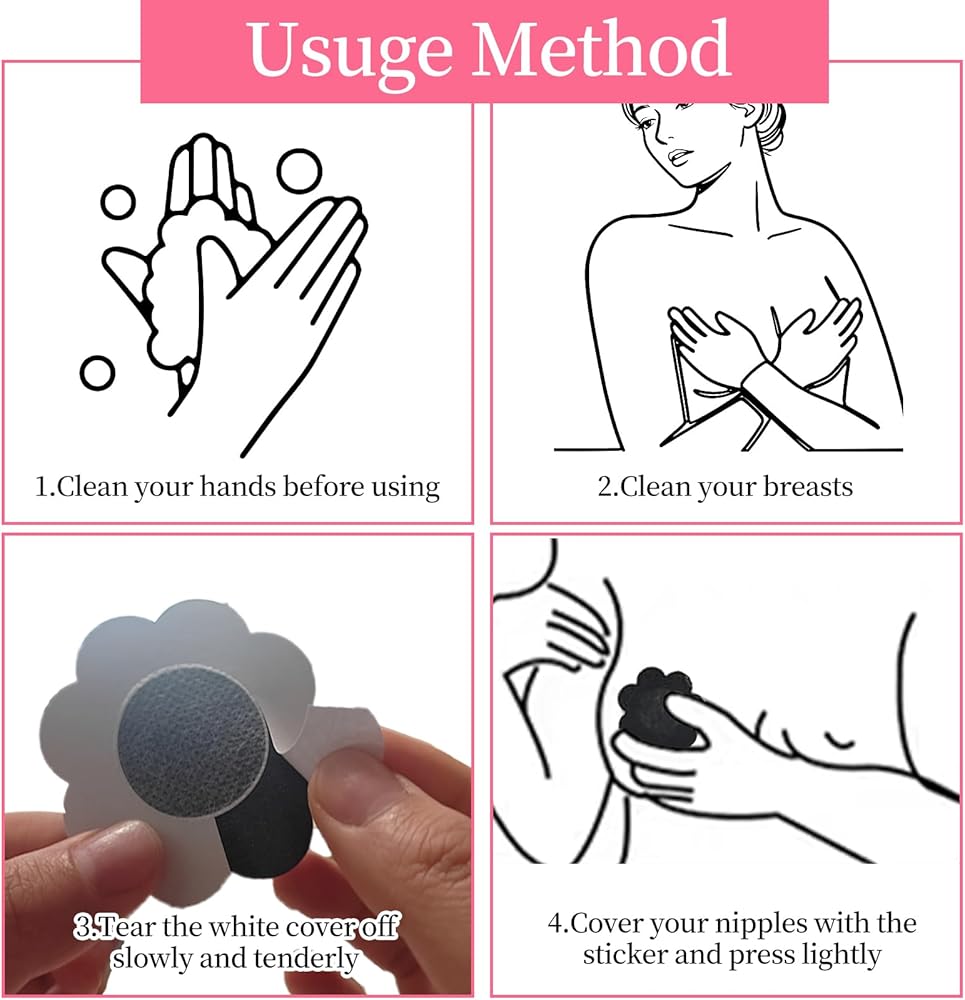 【EASY APPLICATION & REMOVAL】These nipple covers are user-friendly; simply peel and stick them onto clean, dry skin. For easy removal, use a warm towel, ensuring a pain-free experience even after long wear.