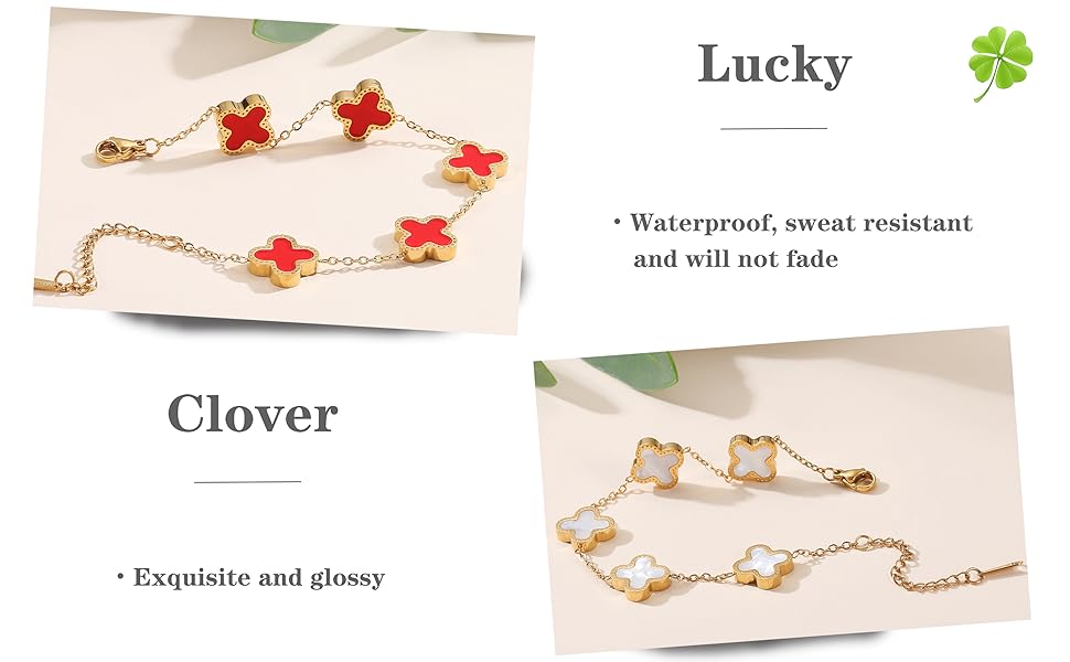 🍀SIZE INFORMATION: The Clover Bracelet is 6.41 "+1.9" extension chain, adjustable extension chain design meets most wrist requirements