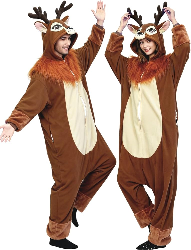 Multi-functional Wear: Ideal as both sleepwear and homewear, and Zipper closure, soft fabric and pockets on both sides. This Reindeer adult onesie is designed for comfort and style, allowing you to effortlessly transition from a relaxing night in to a fun costume event