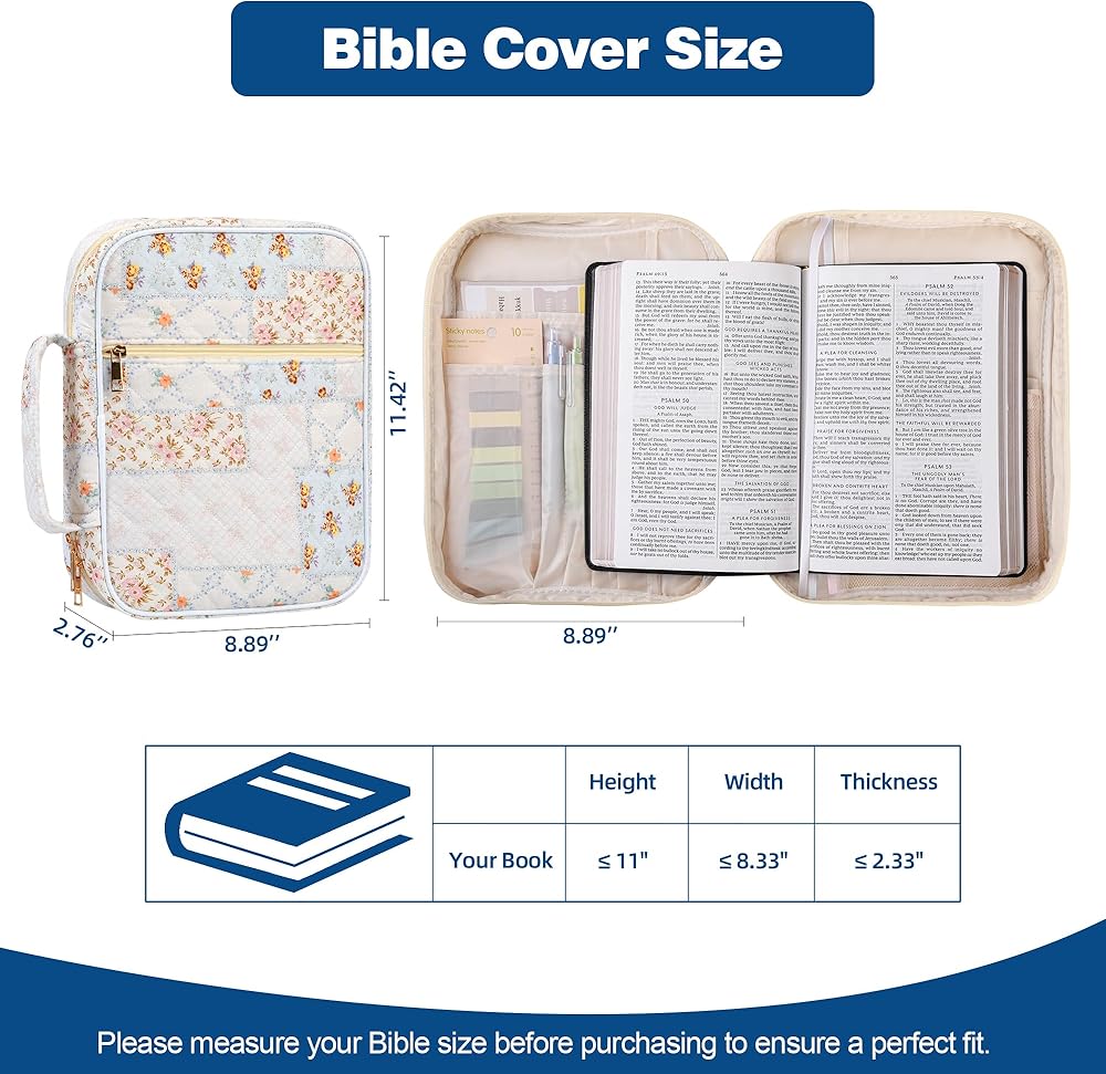 • PREMIUM QUILTED COTTON & WASHABLE: Crafted from durable, soft-touch quilted cotton fabric, these bible covers for women combine elegance with longevity. Unlike standard covers, our high-quality material is machine washable, making it incredibly easy to keep your bible case clean and fresh for years of use.