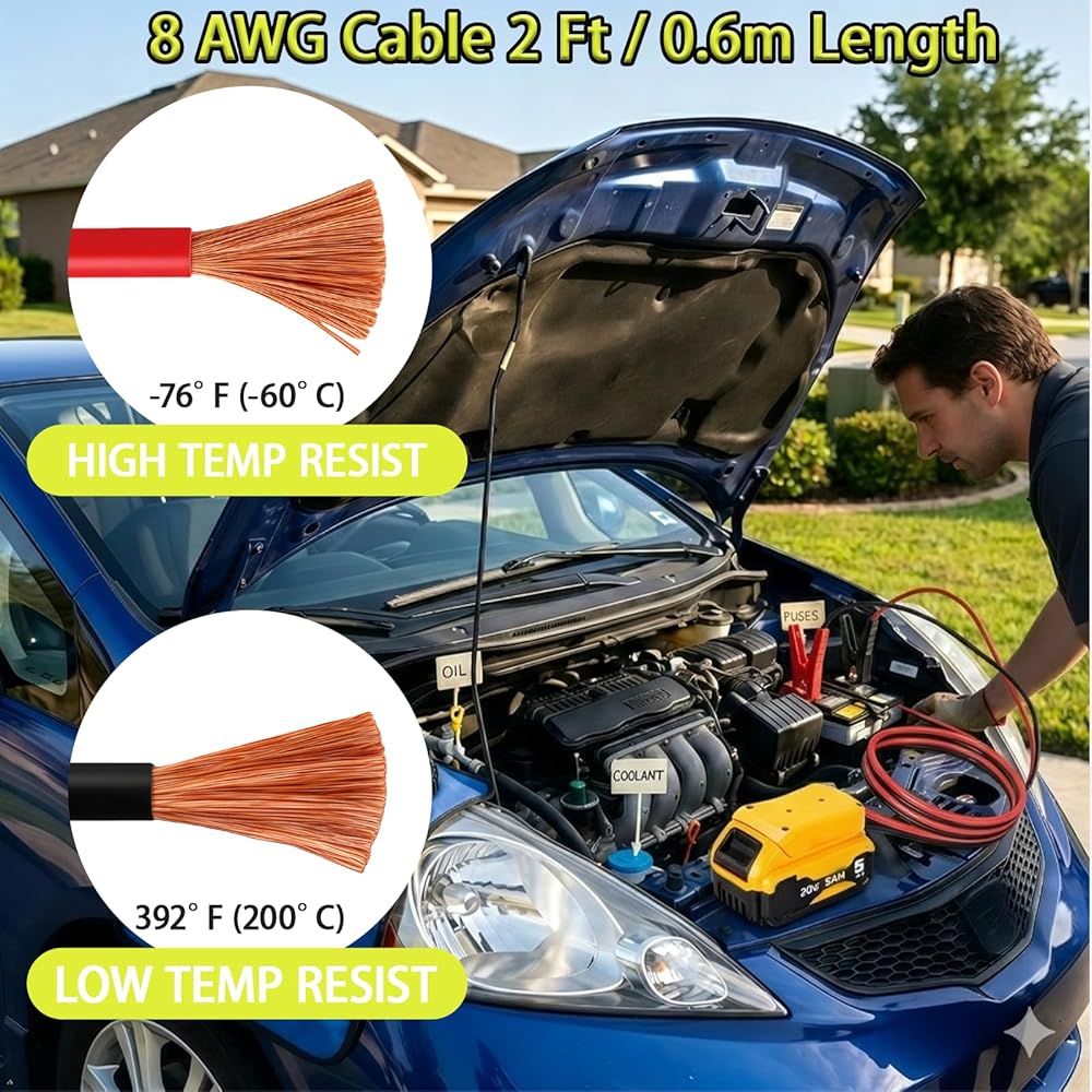 كابلات توصيل مناسبة لبطارية 20 فولت إلى كابل محول السيارة - مشابك تمساح 8AWG 2FT مقاومة للحرارة 200 درجة مئوية لبدء تشغيل السيارات والشاحنات وجزازات العشب وأدوات الطاقة