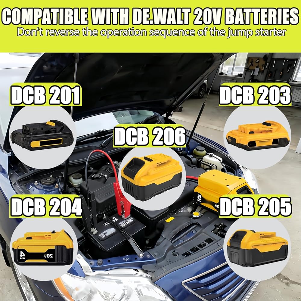 • من أجل: 20V Direct Compatibilit يتكامل بسلاسة مع De.walt 20V (لا توجد بطاريات متضمنة) تعمل المشاركة بلمسة واحدة على قفل المحول بقوة في حجرة البطارية، مما يحول بطارية أداة الطاقة الخاصة بك على الفور إلى مشغل قفز محمول. - يعمل بسلاسة بدون محولات. مثالية لمجموعة من التطبيقات بما في ذلك السيارات والدراجات النارية وسيارات الدفع الرباعي الصغيرة والجزازات