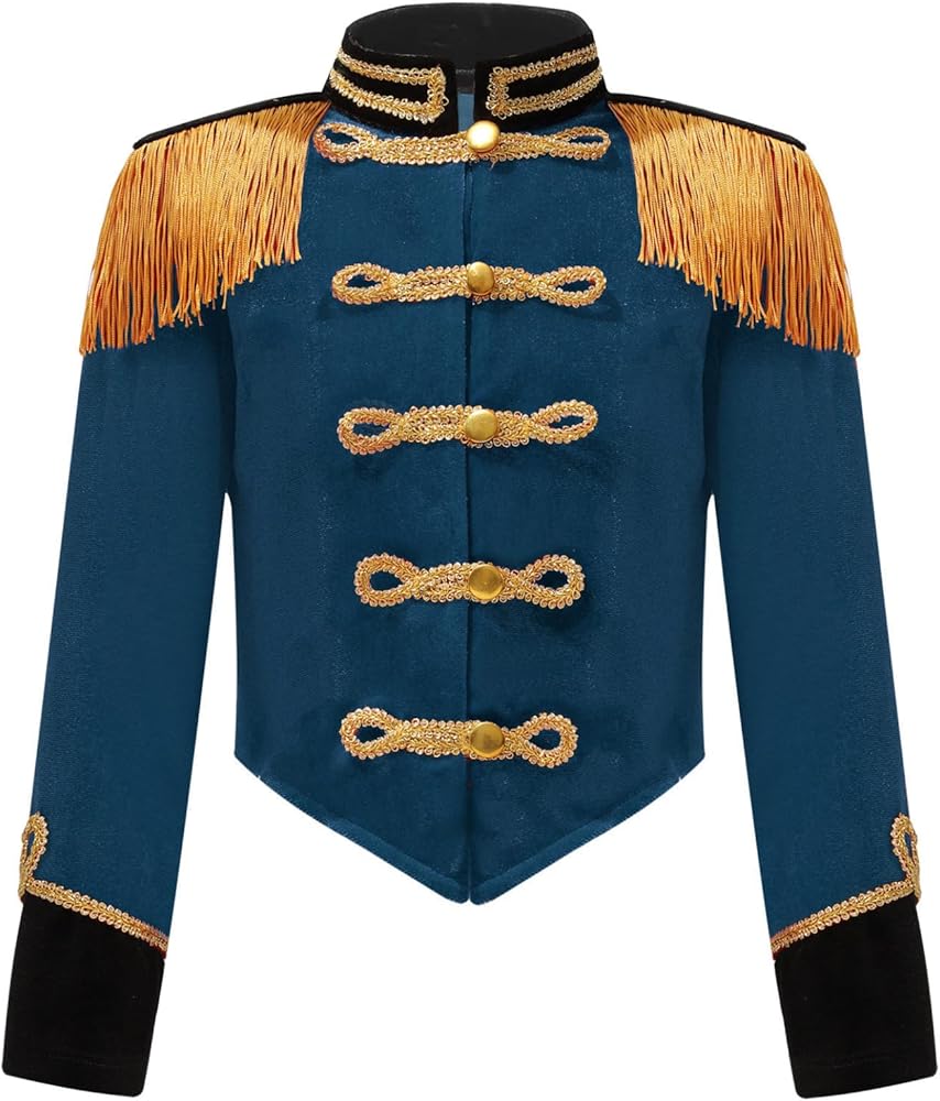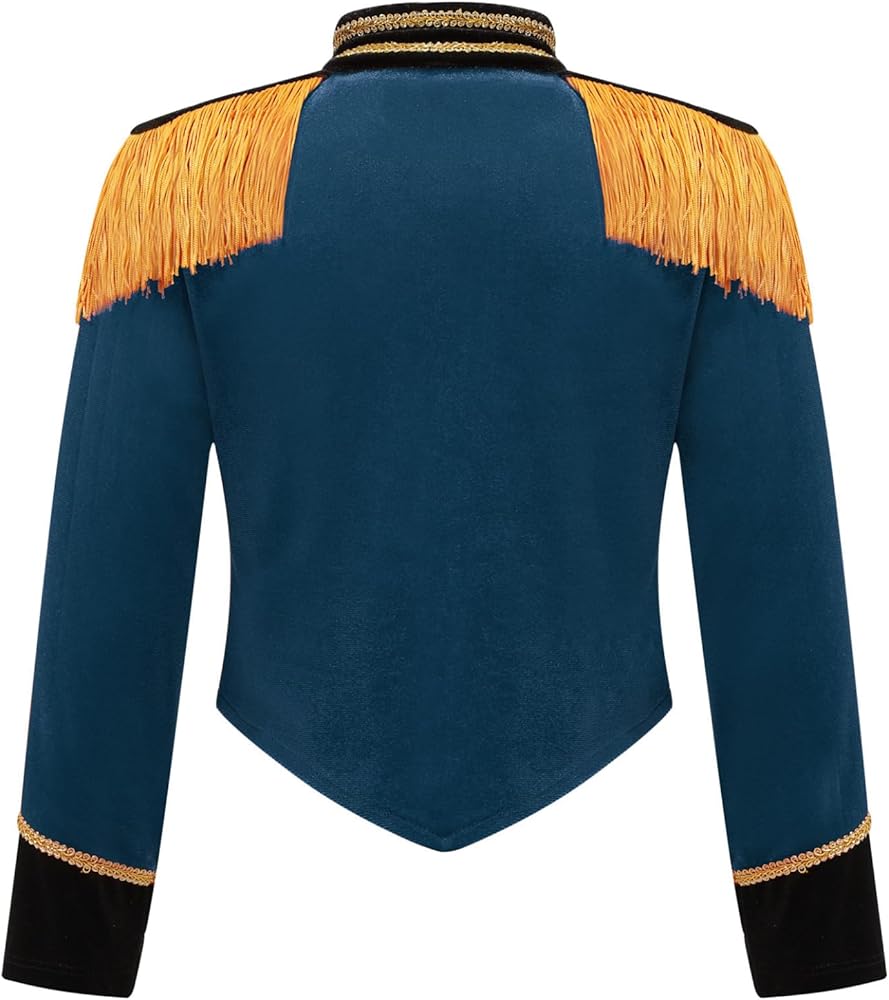 أطفال بنات الطبال موصل رئيسي مسيرة الفرقة طويلة الأكمام سترة معاطف لحفلة كرنفال الطاووس الأزرق 10 سنوات