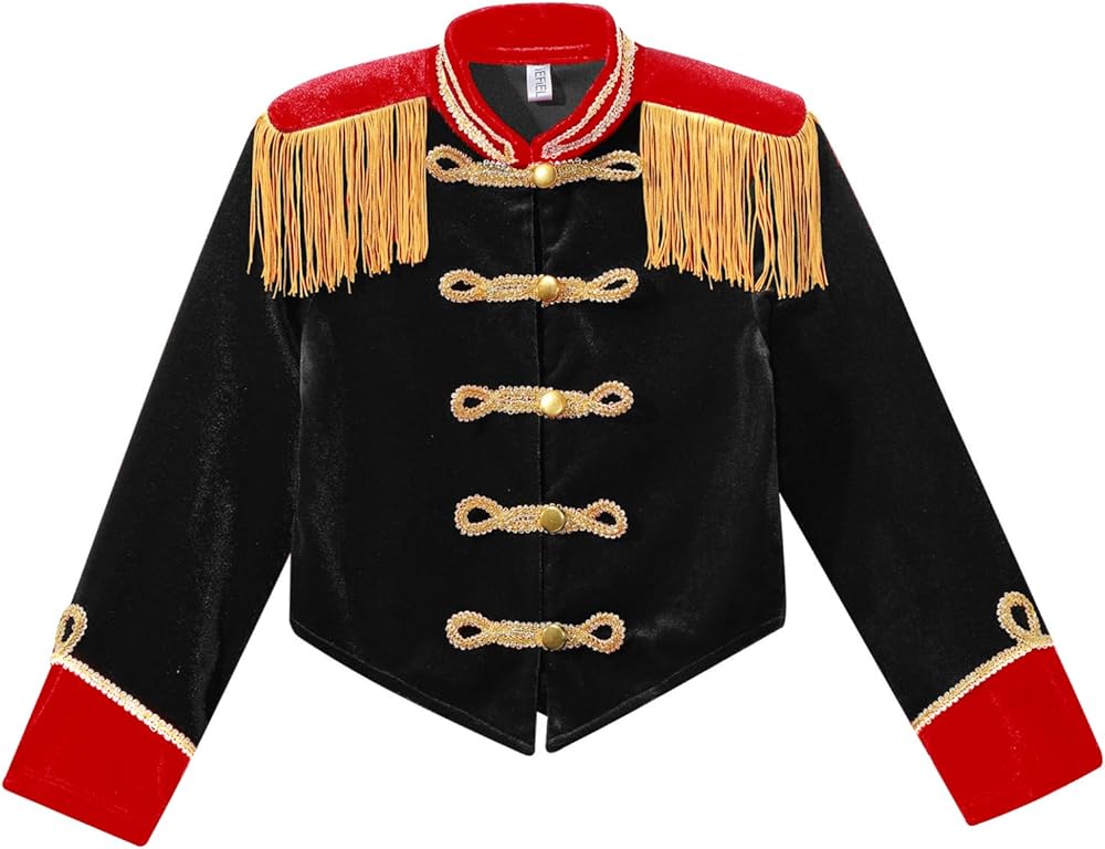 • A circus costume jacket for girls, stand collar, long sleeve and front button closure