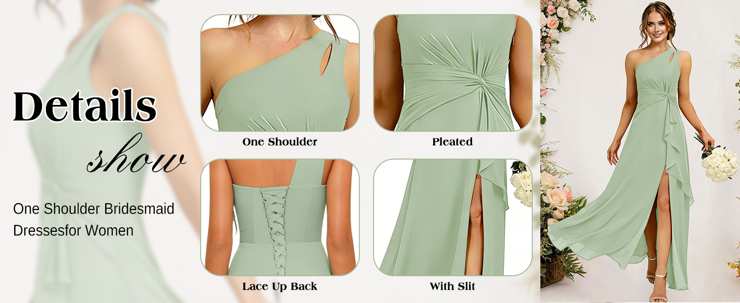 For More Features: Bridesmaid Dress for Women, Wedding Guest Dress,One Shoulder Chiffon Formal Dress for Women, Formal Gowns for Women, One Shoulder Bridesmaid Dresses for Wedding with Slit, Ruffle Pleated Modest Sage Green Bridesmaid Dresses for Women Long.