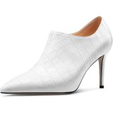 Saekcted إمرأة خنجر منتصف كعب أشار تو حذاء من الجلد قصير Bootie الانزلاق على سستة فستان الحفلات أحذية الشتاء in Kuwait
